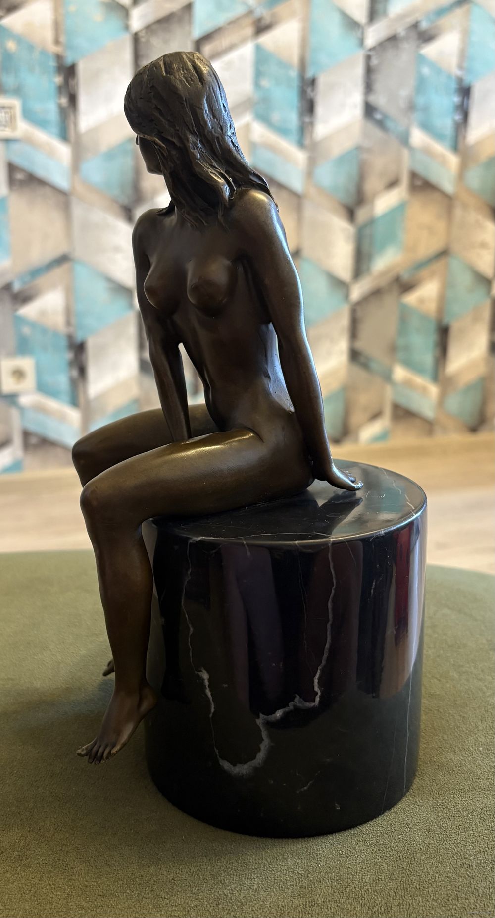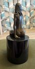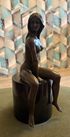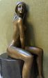 Бронзовая скульптура обнаженной женщины, сидящей на цилиндрическом постаменте, выполненную в античном стиле.