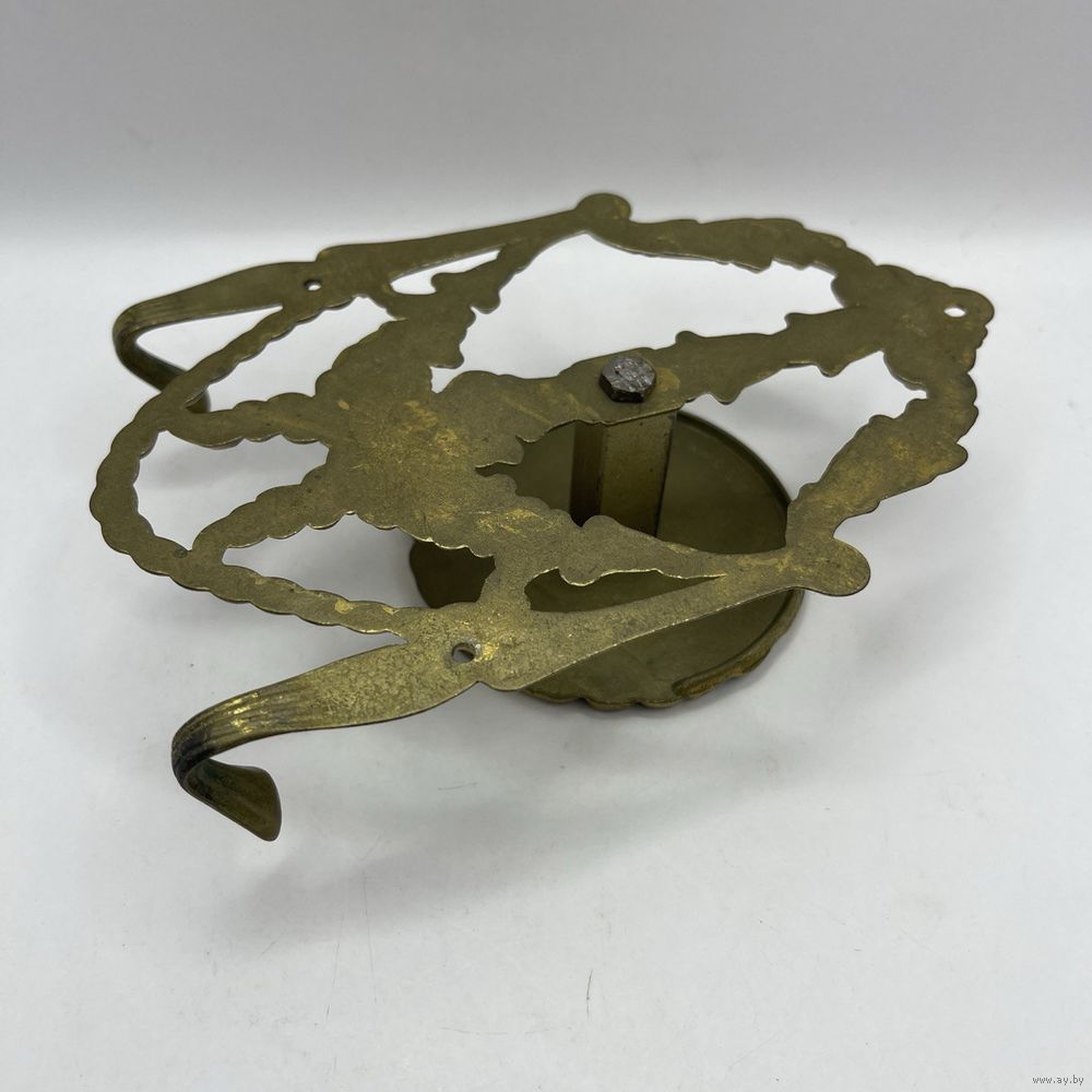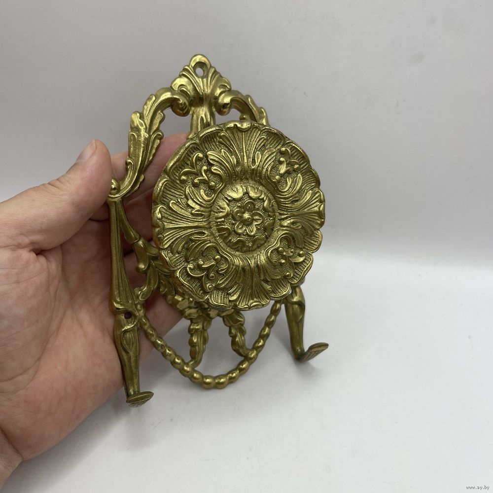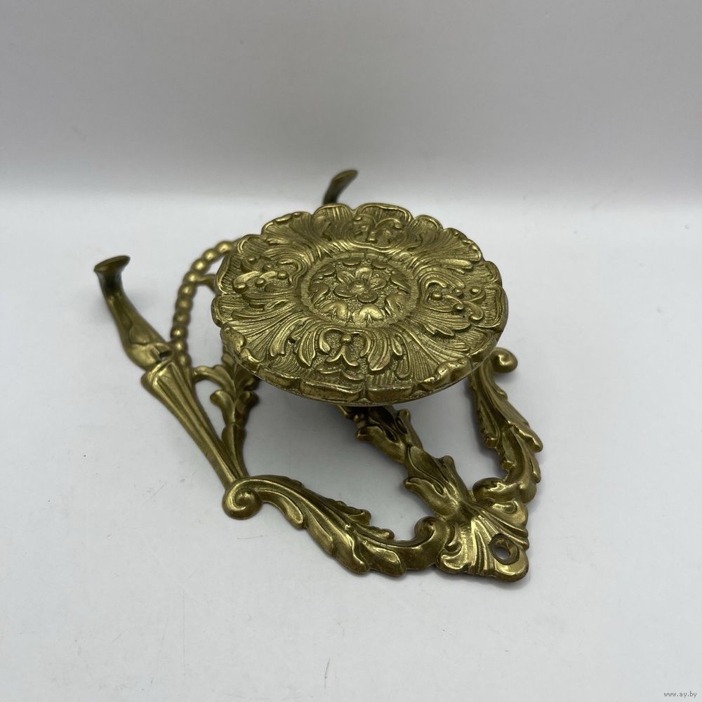 Антикварная дверная ручка, вешалка из бронзового сплава с крючками для одежды или сумок с богатым рельефным декором в стиле барокко. Италия. 1950-е г. г. Клеймо. Глубина 4,5 см, ширина 10 см, высота 16,5 см. Диаметр ручки 7,5. С отверстиями для настенного/мебельного крепления. Естественная патина.