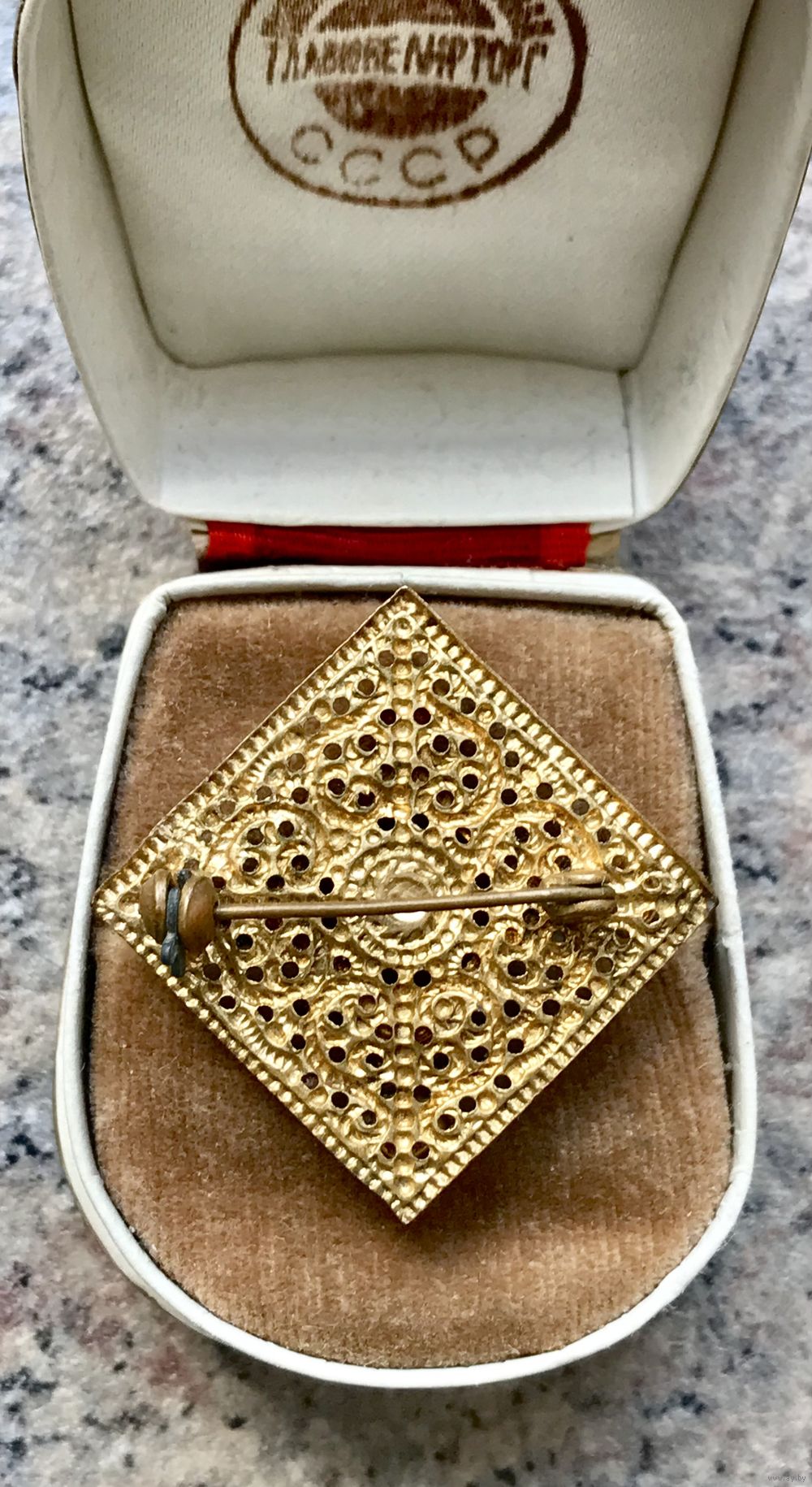 Небольшая винтажная чешская брошь. Размер 2,5х2,5см., центральная вставка 1,3х1,3см. Не хватает одной боковой вставки (учтено в цене).