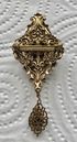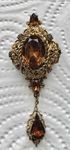 Винтажная чешская брошь из латуни и вставок из стекла. Верхняя часть состоит из трёх уровней. Высота броши 7,5см., ширина 3см. Состояние хорошее.