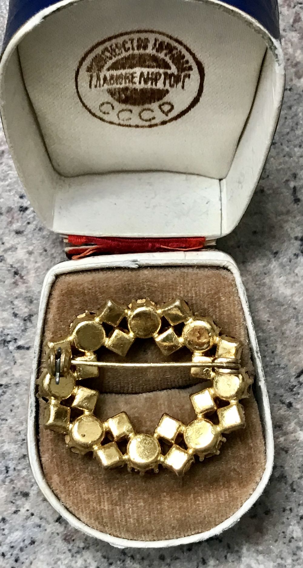 Небольшая винтажная чешская брошь с основой из латуни и вставками из цветного стекла. Размер 3,5х3см. Состояние хорошее.