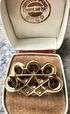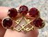 Советская брошь из латуни с позолотой (клеймо) и вставками из стекла гранатового цвета. Размер броши 3,5х2см., вставки ~0,8см.(есть незначительные царапинки и микроскольчики), не хватает трёх подвесок.