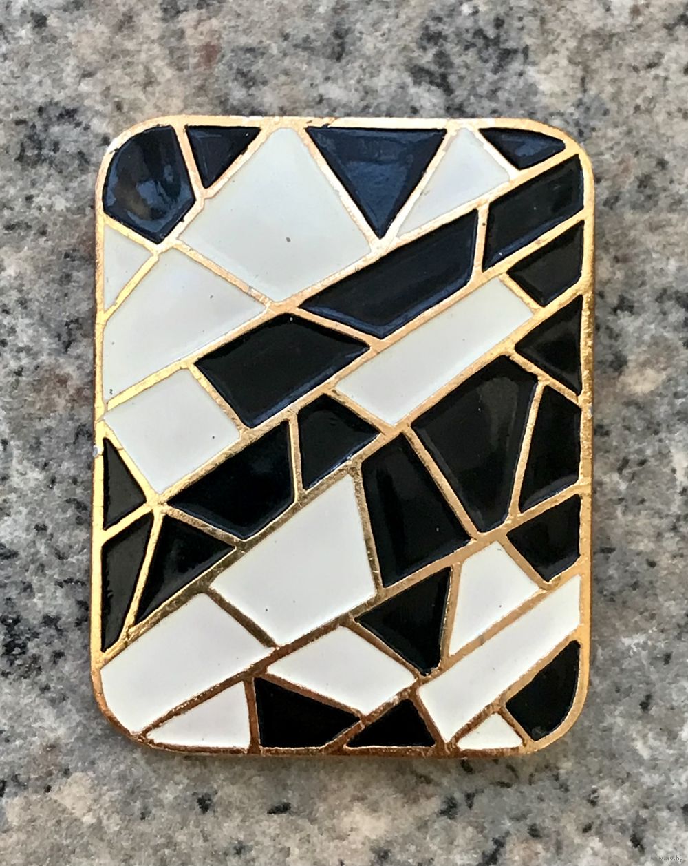 Винтажная брошь из латуни с позолотой, лицевая сторона украшена эмалью. Размер 4,5х3,5см. Состояние хорошее.