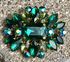 Крупная винтажная чешская брошь со вставками из цветного стекла и основой из латуни с позолотой. Размер 5х4см. Состояние хорошее.