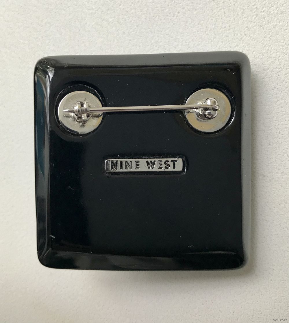 Стильная крупная винтажная брошь от американской торговой марки Nine West. Изготовлена из плотного пластика чёрного цвета. Размер броши 4,4х4,4см. Местами есть незначительные царапки. Маркирована.