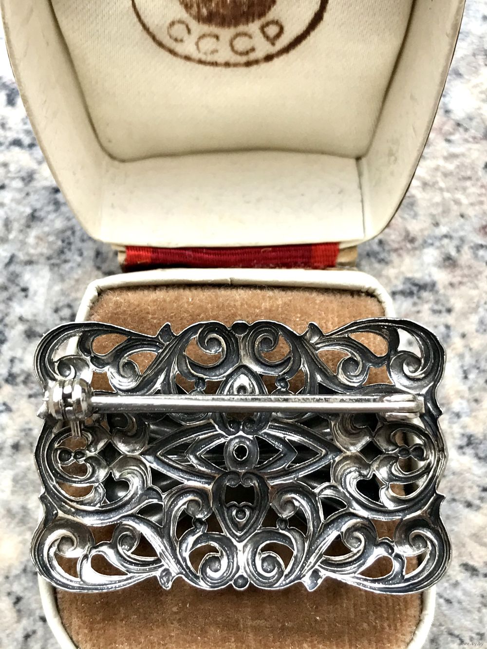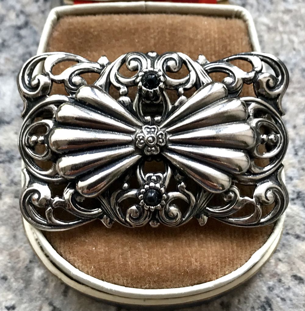 Винтажная брошь из металла серебристого тона. Объемное красивое литьё. Высота броши 2,5см., длина 4см. Состояние хорошее.