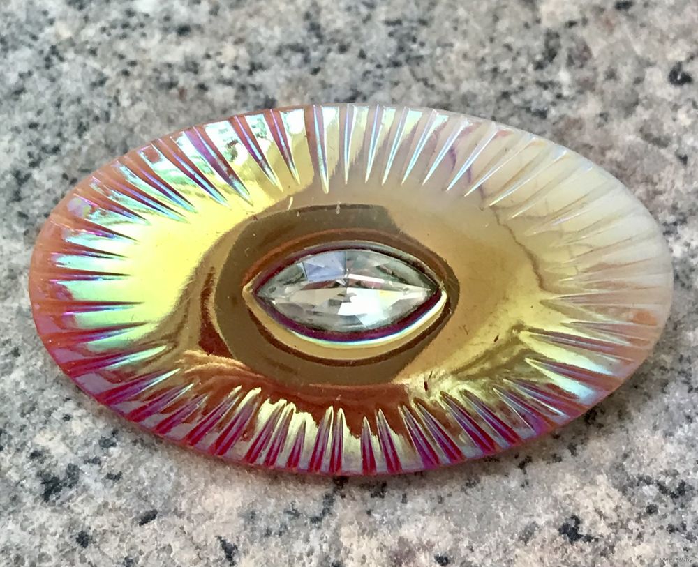 Брошь из глушеного стекла. Нечастая модель. Размер 5,5х3см. На лицевой стороне есть небольшие царапки. Общее состояние хорошее.