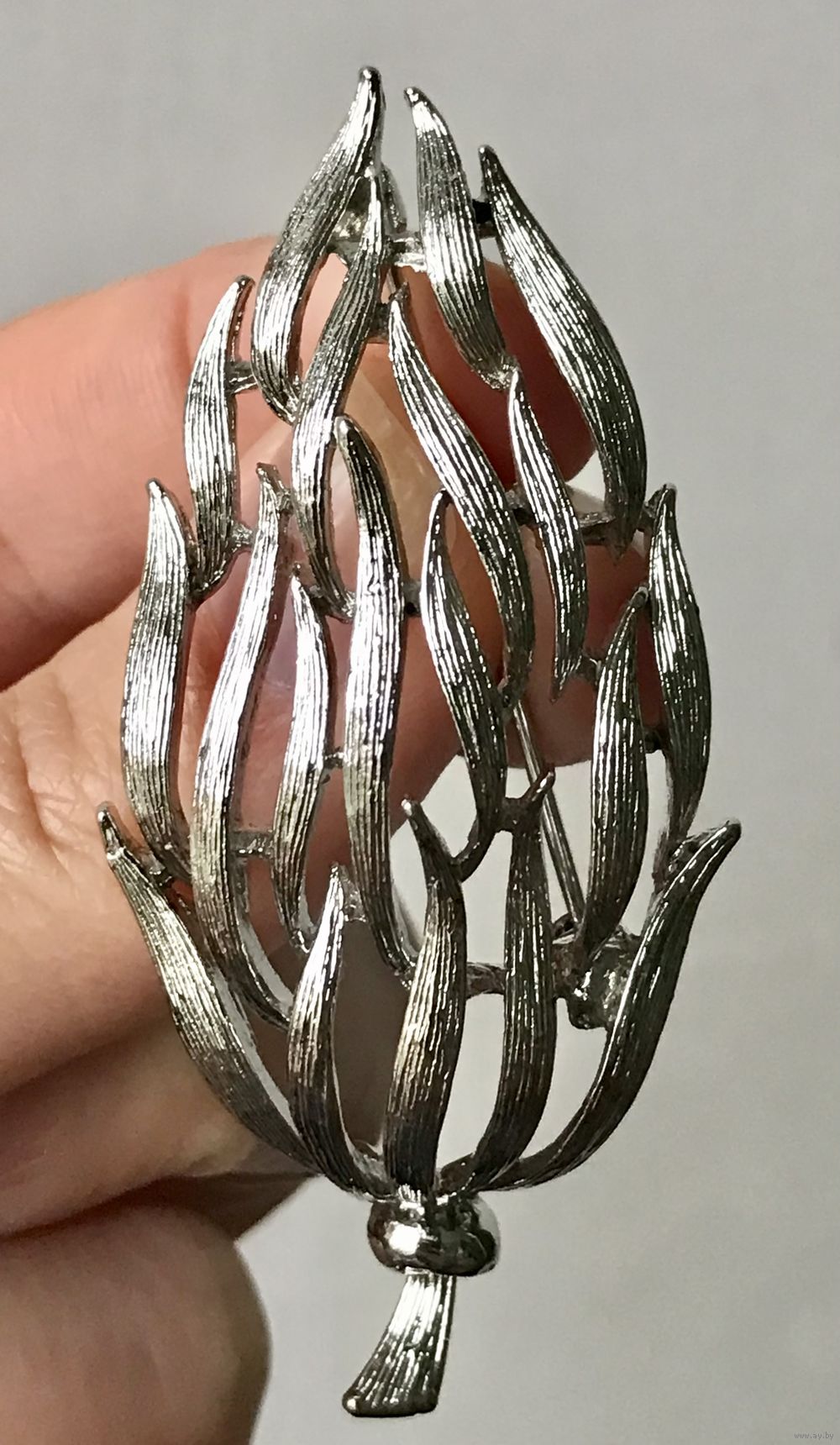 Крупная винтажная брошь от Lisner. Изготовлена из бижутерного сплава цвета серебра. Отличное винтажное состояние. Размер 6,3х3см. Маркирована.