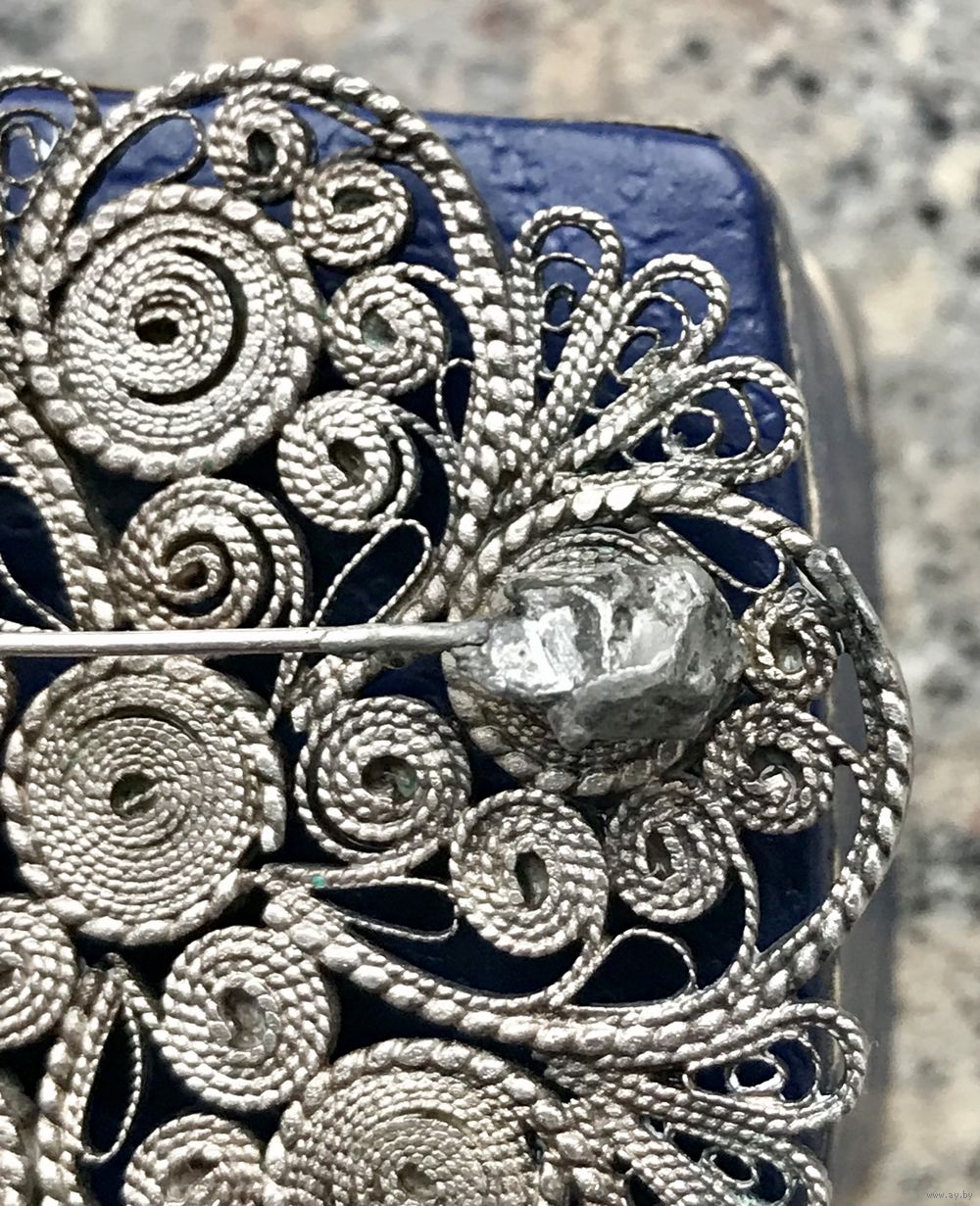 Крупная винтажная брошь из мельхиора с серебрением и вставок из стекла. Работа мастеров Казаковского ювелирного производственного объединения. Диаметр броши 5см. Был ремонт застёжки (учтено в цене).