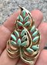 Винтажная брошь от американского бренда Gerry’s с основой из металла цвета приглушенного золота. Лицевая сторона украшена эмалью. На металле с лицевой стороны имеются потёртости, так же есть сколы эмали (учтено в цене). Размер броши 5,5х3,5см. Маркирована.