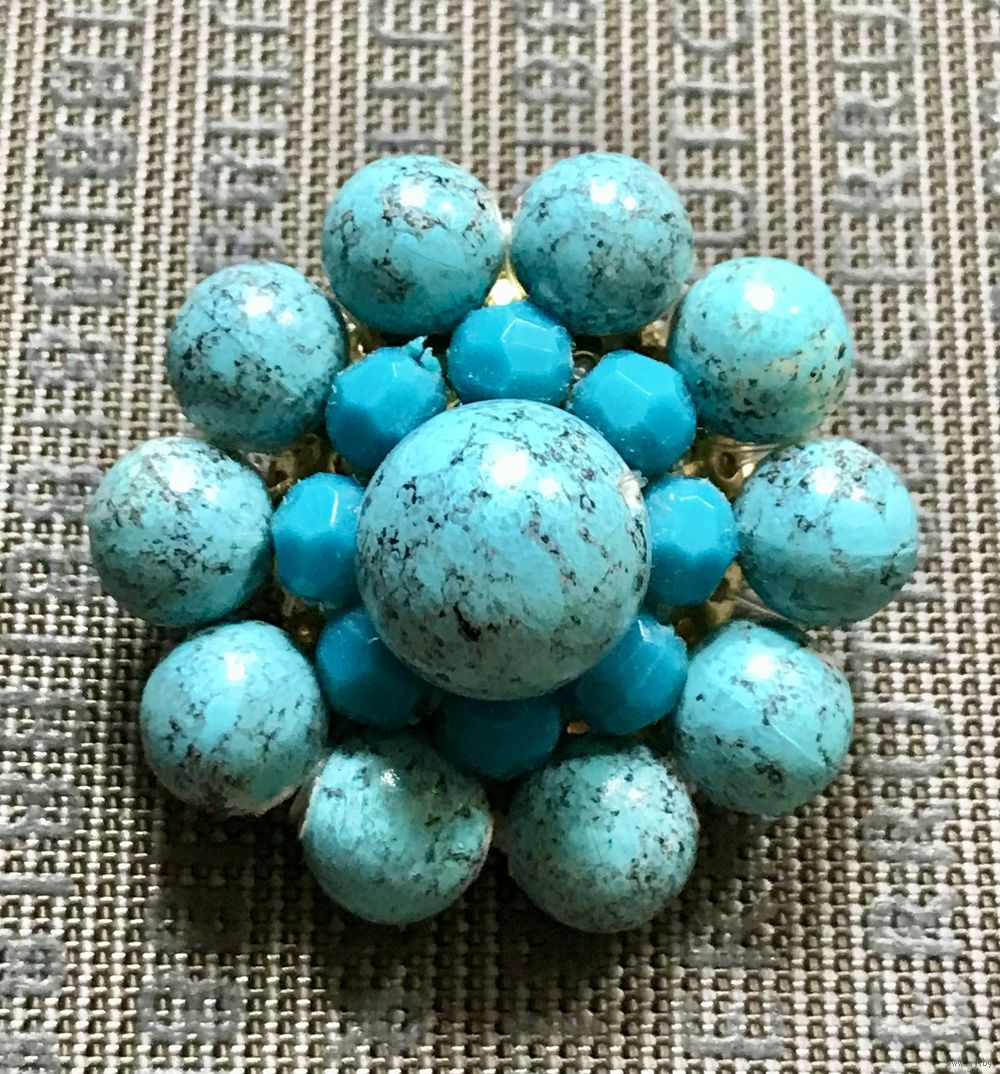 Небольшая винтажная наборная брошь. Бусины сделаны из пластика под пекинское стекло. Диаметр броши 3,3см. Брошь лёгкая, подойдёт и для тонких тканей. Состояние хорошее.