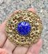 Крупная, эффектная чешская брошь (50-60-е гг.) из латуни с центральной вставкой из художественного стекла под лазурит. Брошь двухуровневая, диаметр 5,2см., диаметр центральной вставки 1,8см. Состояние хорошее.