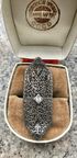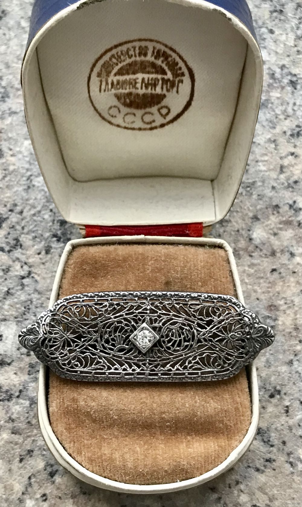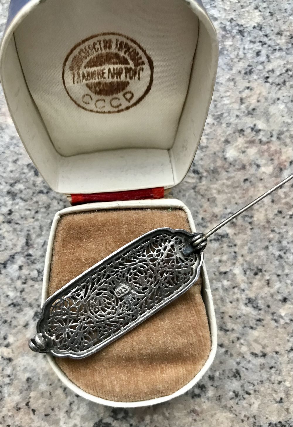 Винтажная брошь из серебра 925пр. в стиле ар-деко. Размер 4,7х1,6см. Нет фиксатора в замке, но брошь и без него хорошо держится на ткани.