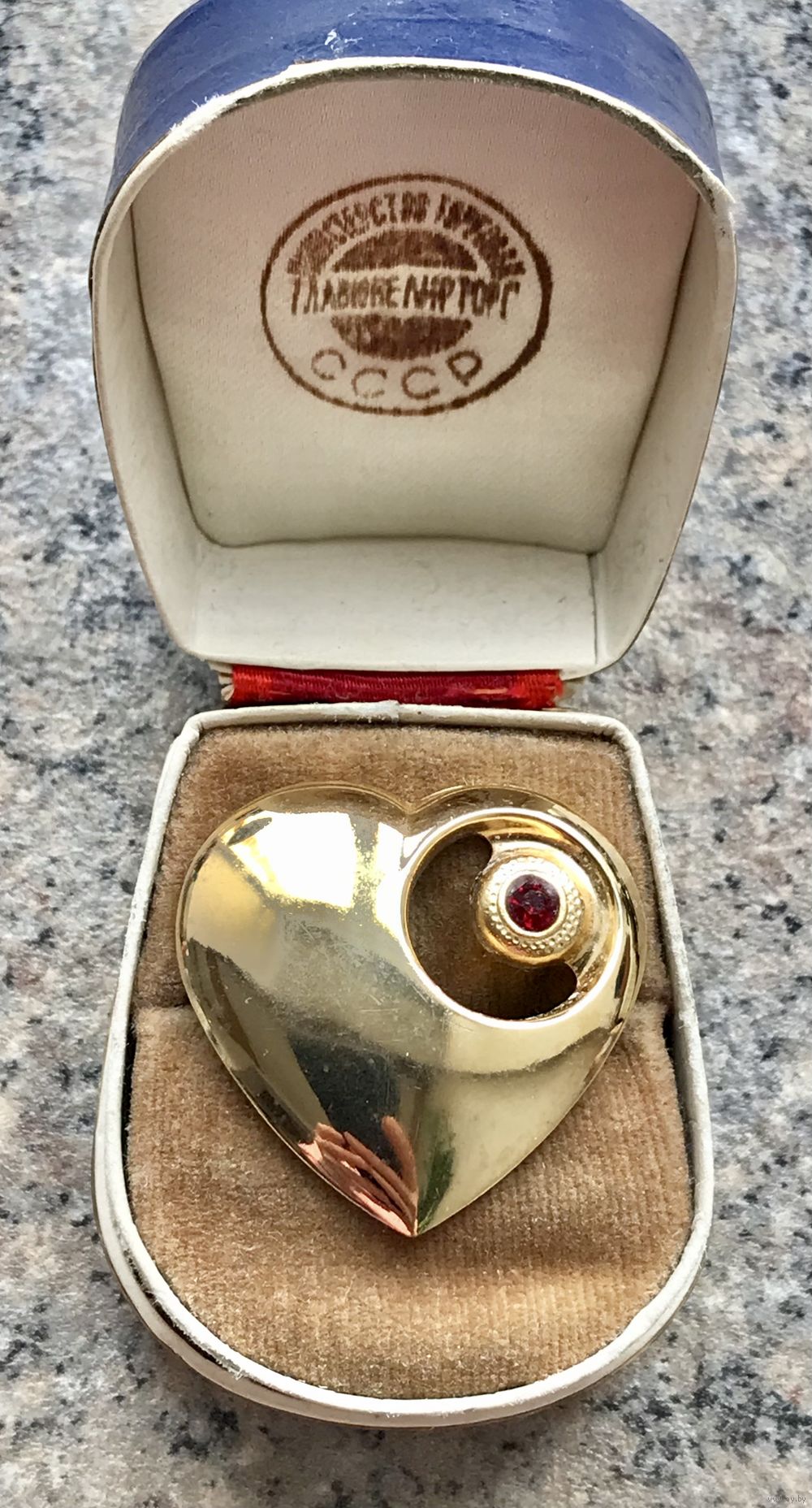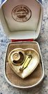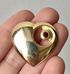 Небольшая винтажная брошь в виде сердечка из металла золотого тона, на лицевой стороне вставка рубинового цвета. Размер броши 3х3,2см. Состояние хорошее.