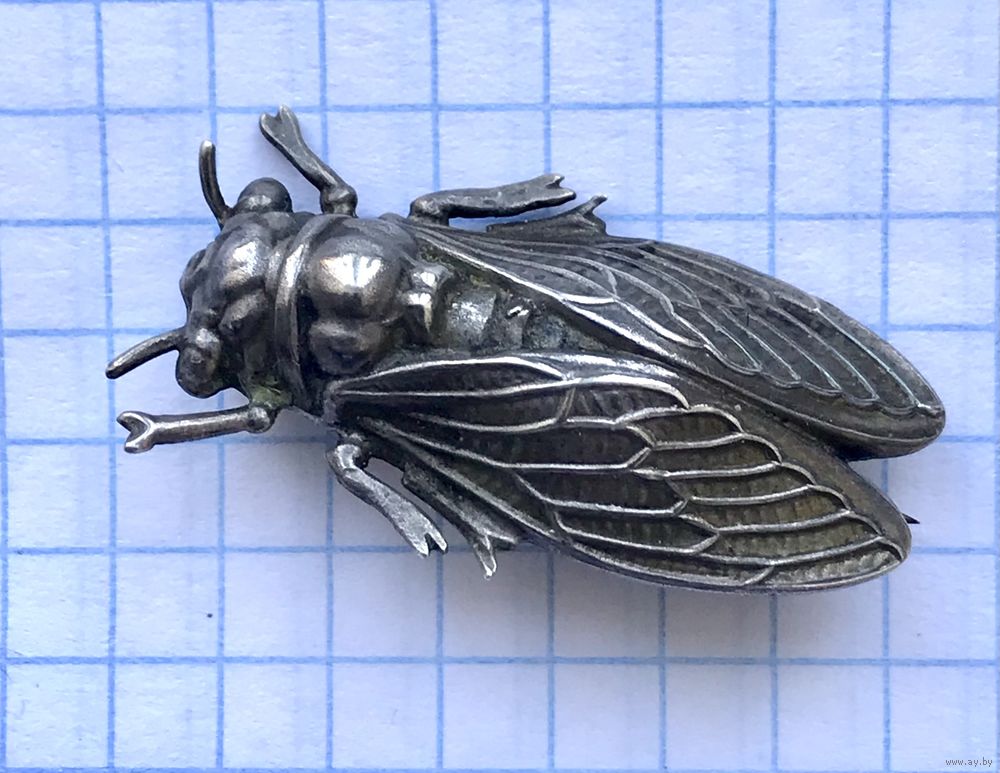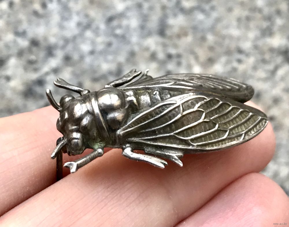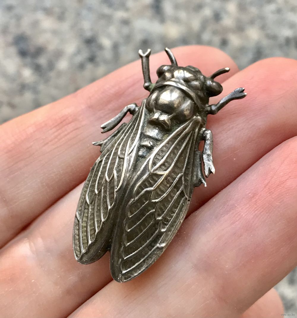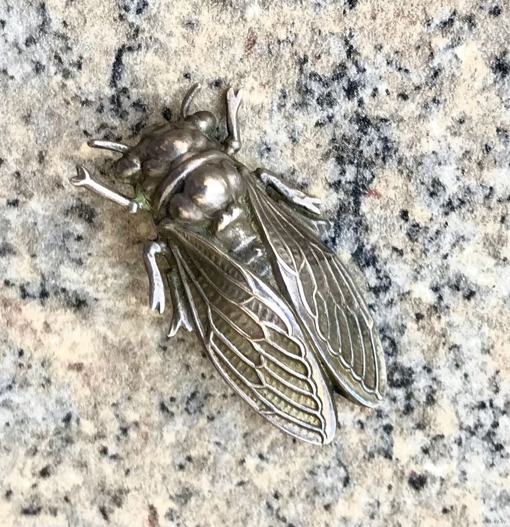 Брошь цикада, выполнена из металла серебристого тона. Реалистичный дизайн. Не маркирована. Размер 3,5х1,5см. Франция , конец XIX начало XXвв. Состояние хорошее.