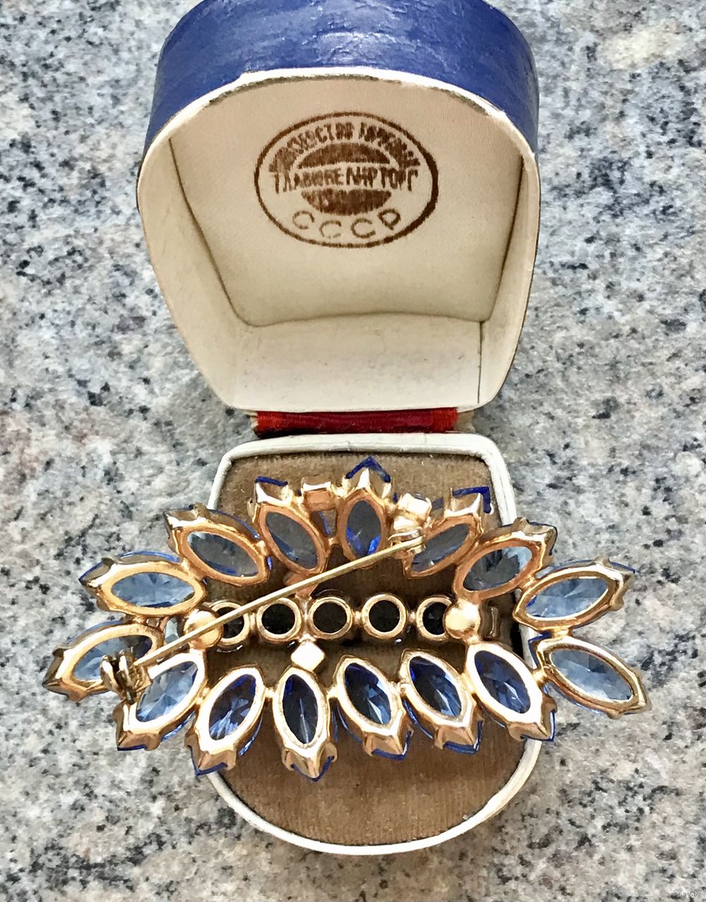 Крупная винтажная чешская брошь со вставками из цветного стекла. Размер 6,5х3,5см. Состояние хорошее.