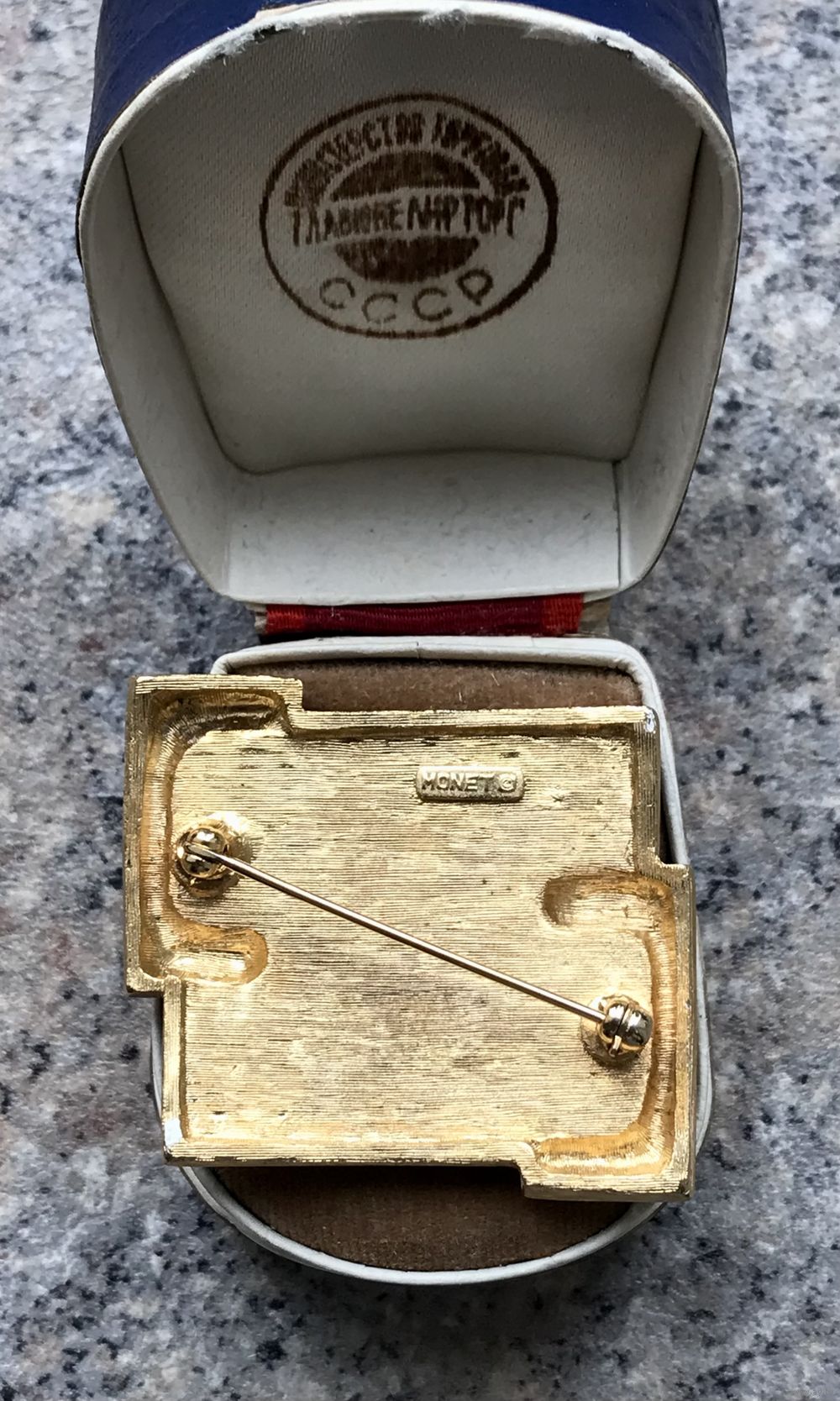 Винтажная (1970-е гг.) брошь известной американской компании Monet с основой из бижутерного сплава золотого тона. Лицевая сторона украшена эмалью молочного цвета. Размер броши 3,5х3,7см. Маркирована. Тяжёленькая. Состояние хорошее.