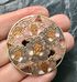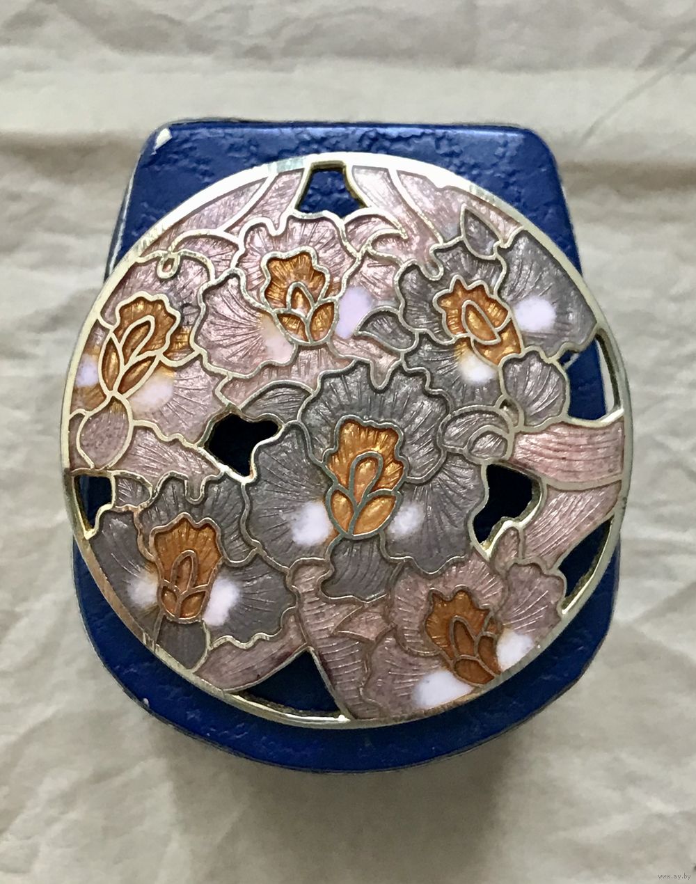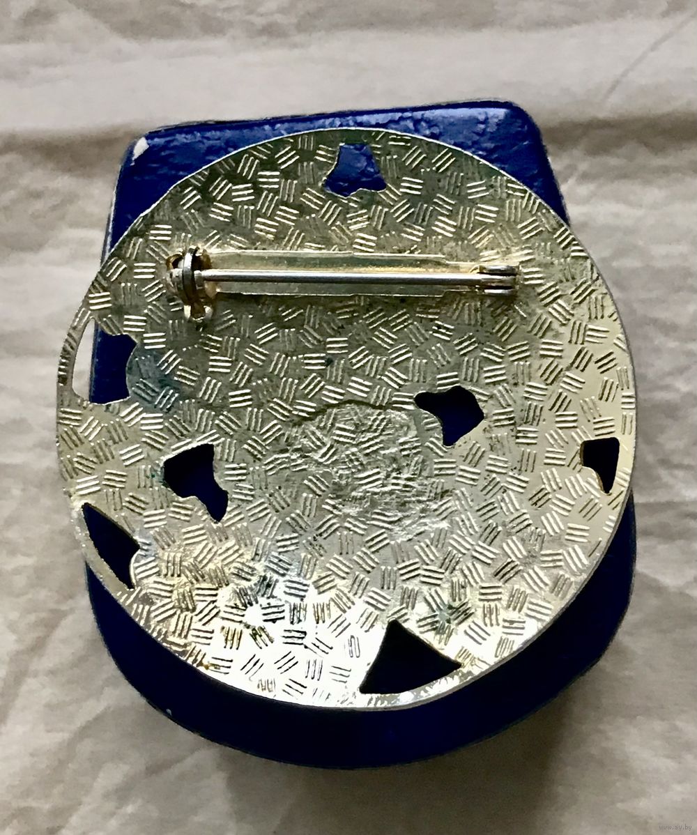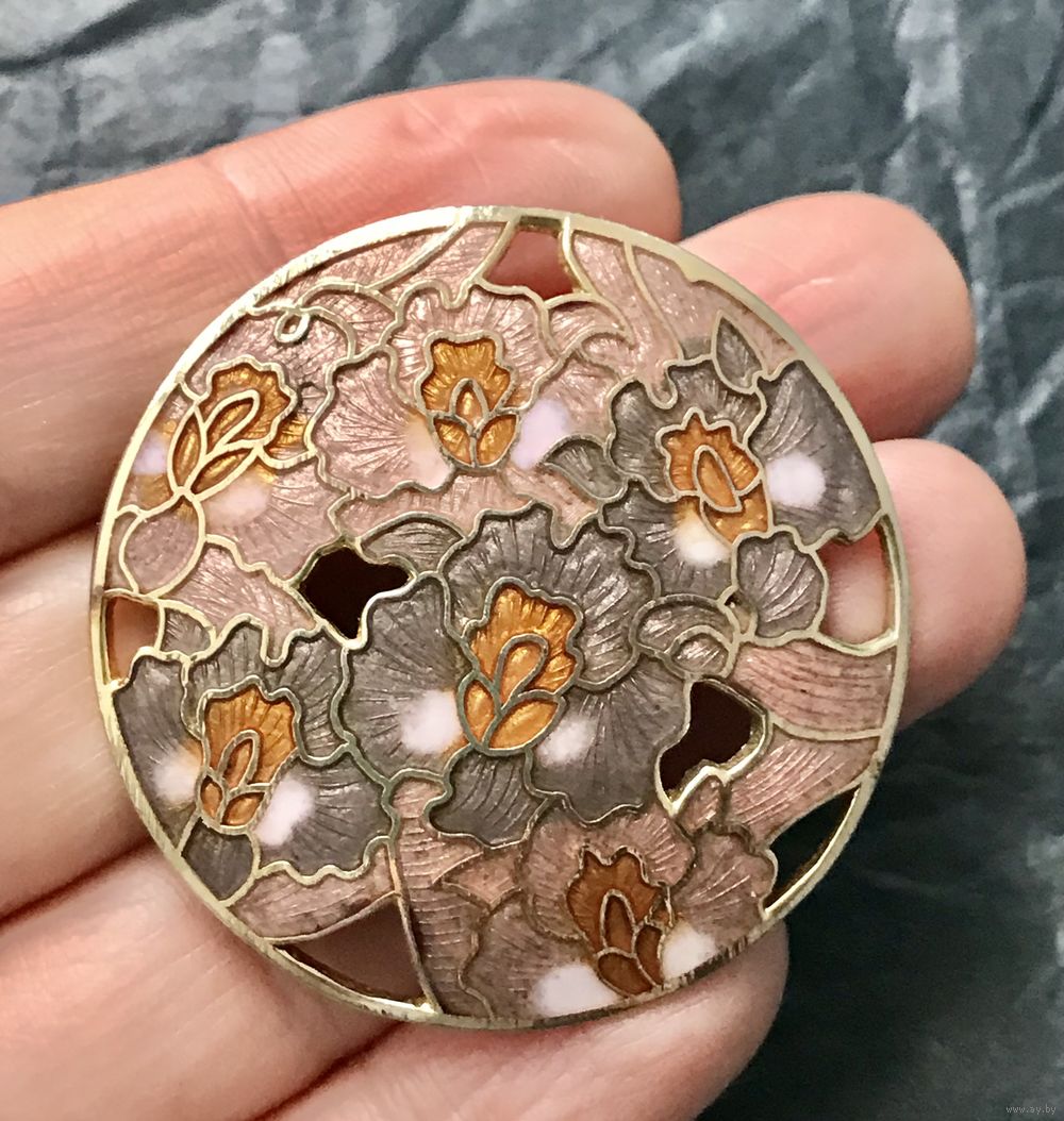 Винтажная крупная брошь английского бренда Fish&crown. Основа из металла золотого тона, лицевая сторона украшена эмалями. Диаметр 4,3см. Не маркирована. Состояние хорошее.