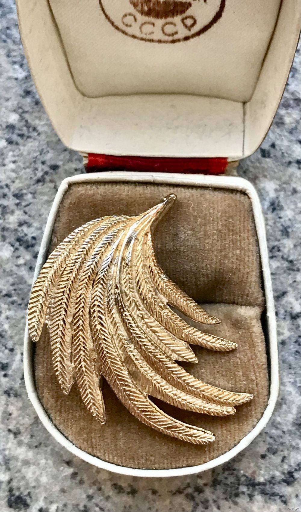 Винтажные броши из металла золотистого тона (на металле местами имеются небольшие потёртости). Размер каждой 4х2,5см. Немного отличаются по цвету. Маркированы. Можно носить как парные. Цена указана за одну.