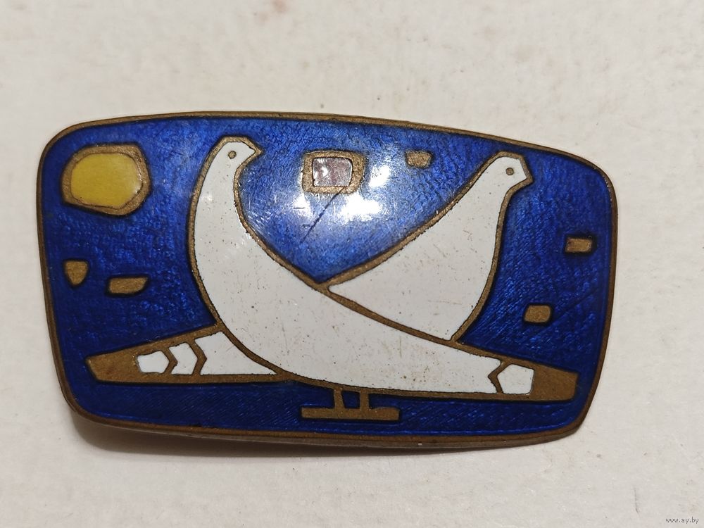 Винтажная редкая брошь с изображением двух голубей. Эмаль. Щербинский завод металлической галантереи. Состояние на фото, смотрите внимательно.
