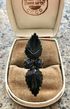 Небольшая антикварная брошь с основой из латуни, вставки из стекла French jet. Размер броши 4х1,3см. Состояние хорошее.