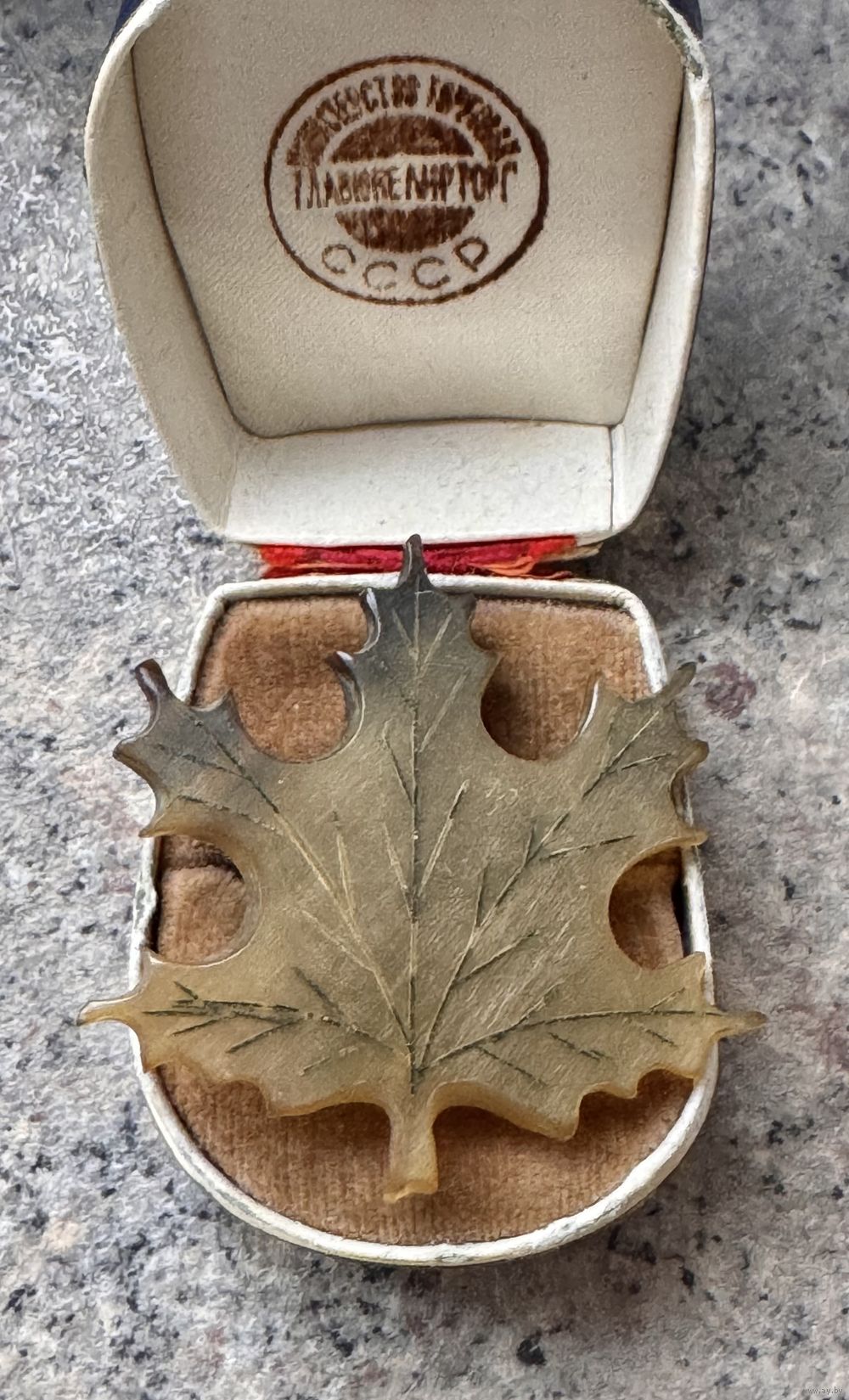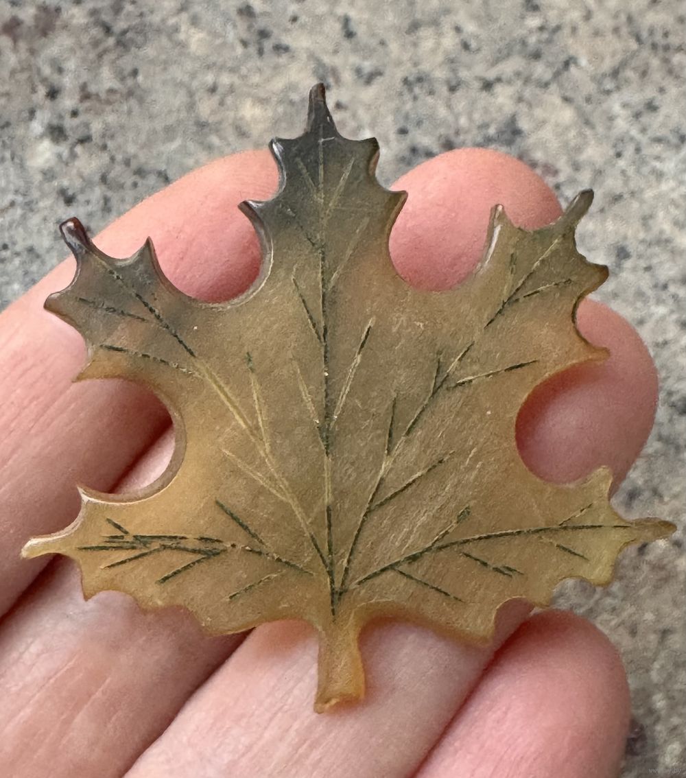 Винтажная брошь из рога в виде кленового листочка. Размер 4,5х4,5см. Состояние хорошее.