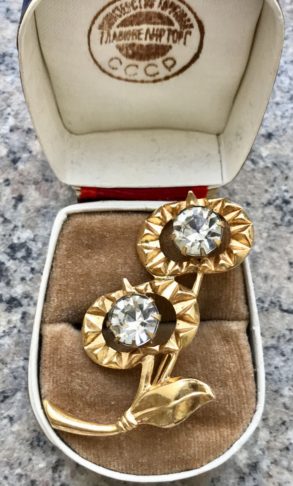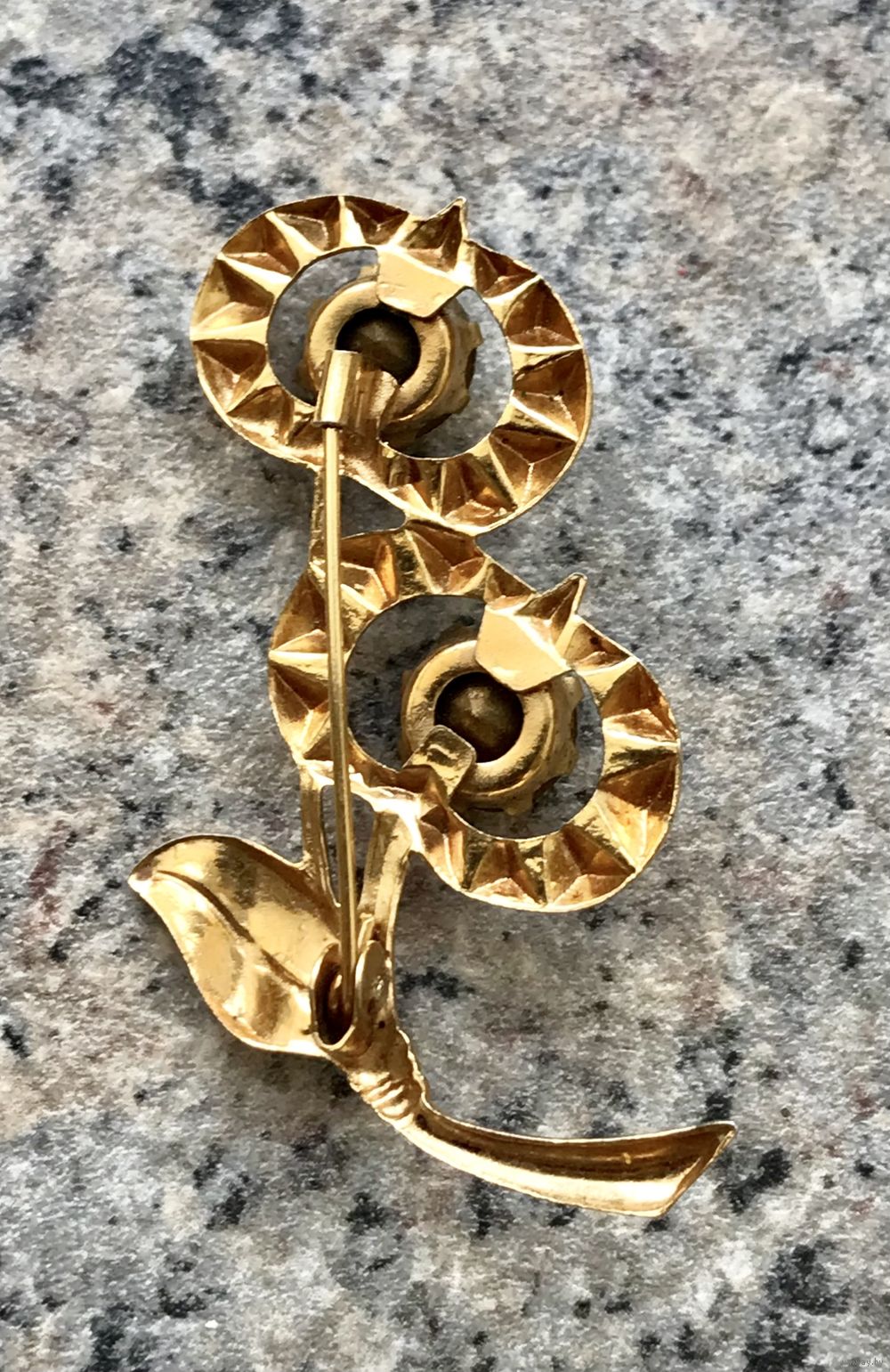 Винтажная брошь чертополох, Красная Пресня, 1970-е гг. с основой из латуни с позолотой (клеймо) и вставками из стекла. Высота броши 5см.,диаметр вставок 1см.