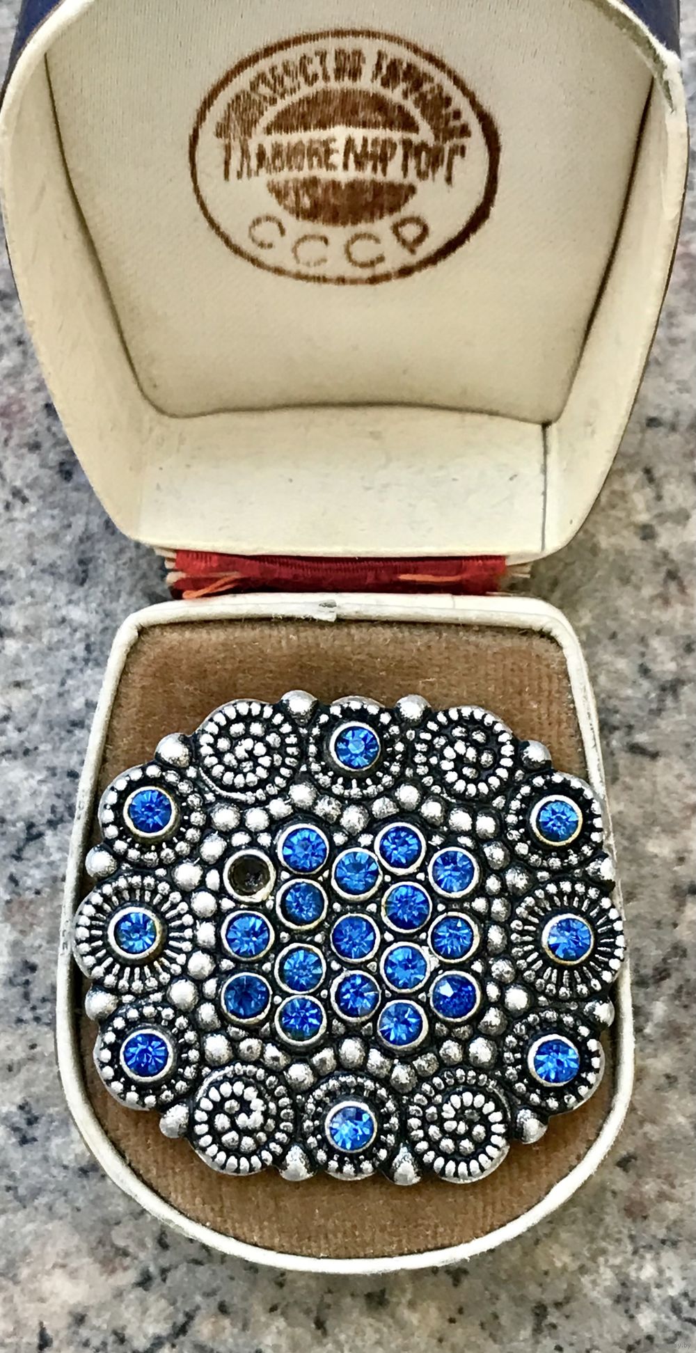 Брошь завода «Рекорд». Размер 4х3,3см. Не хватает одной вставки.