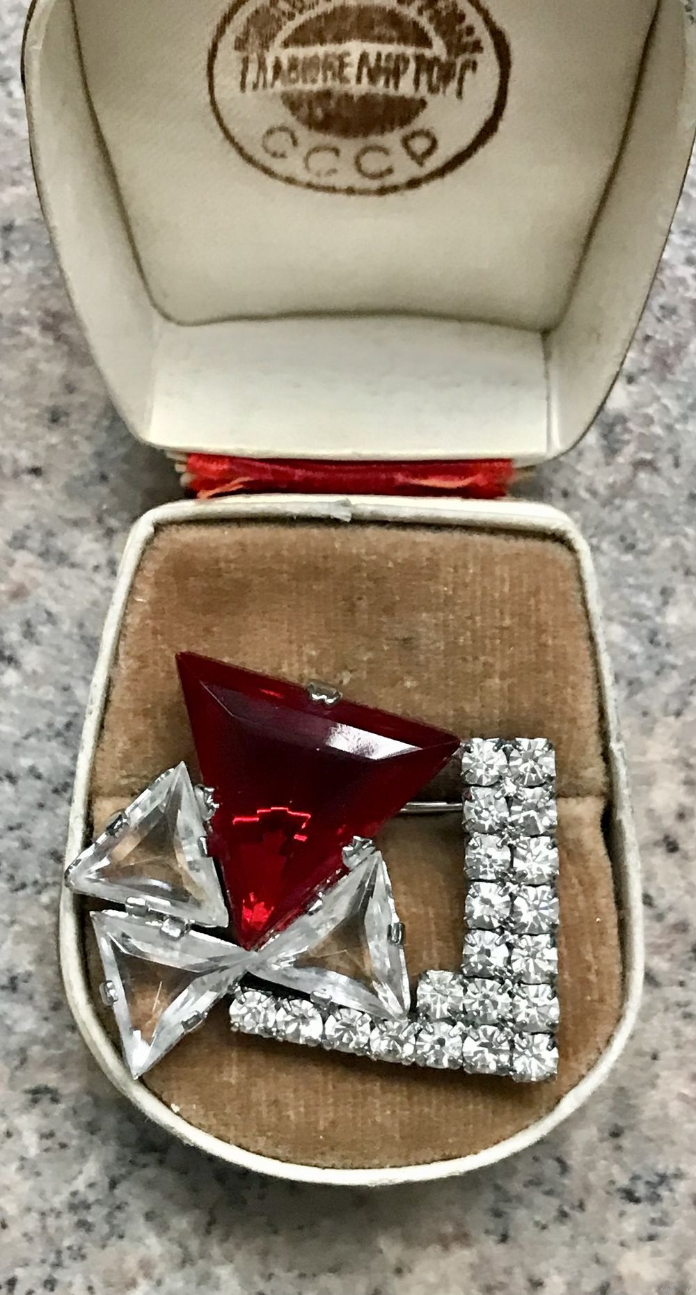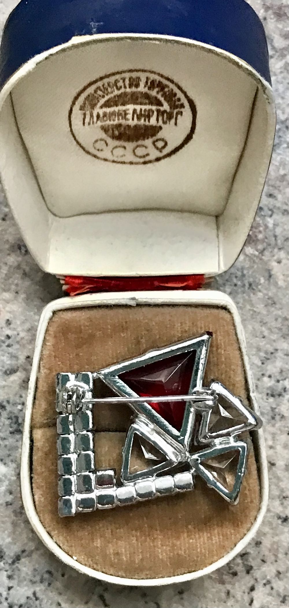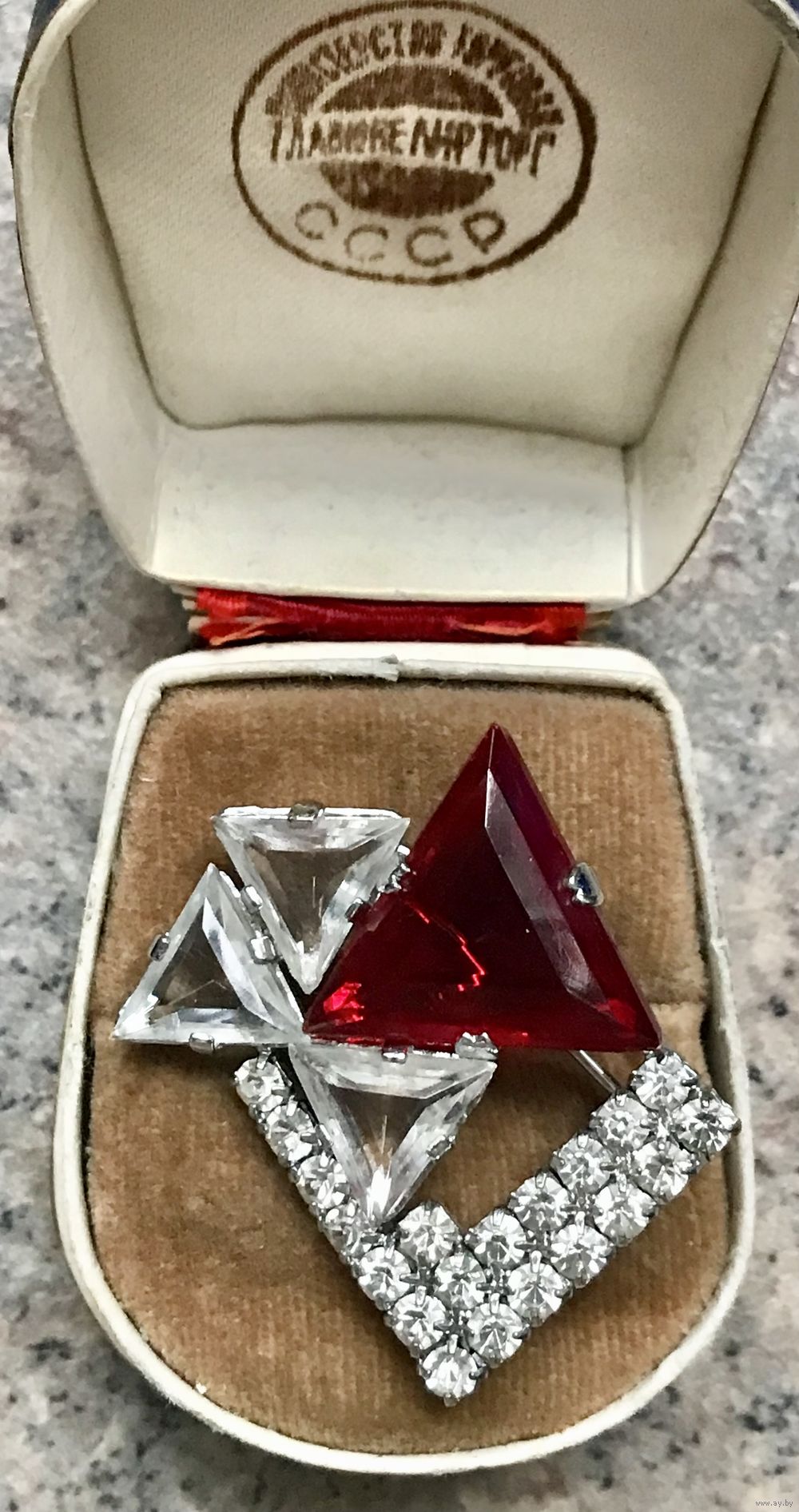 Небольшая винтажная чешская брошь с основой из металла серебристого тона и вставок из цветного стекла. Размер броши 4х3,5см. Состояние хорошее.