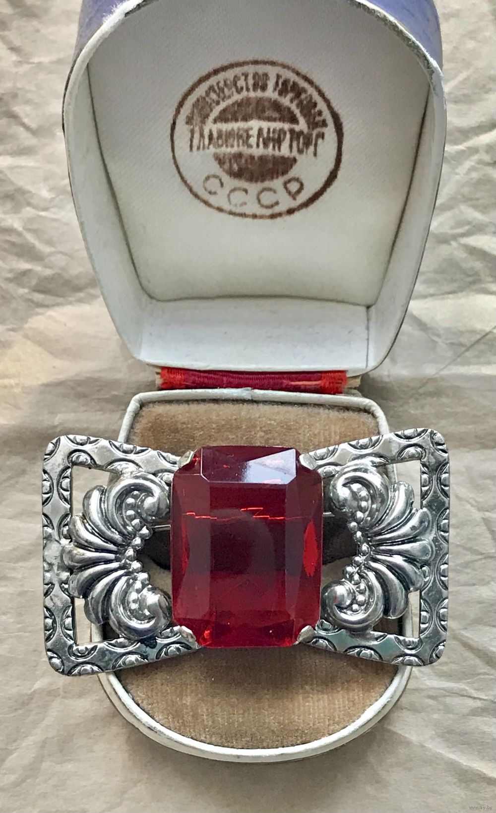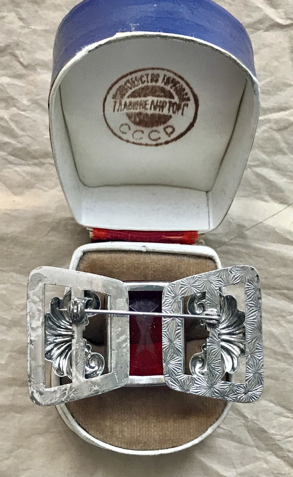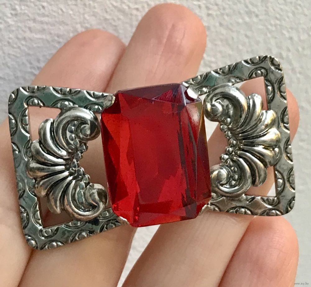 Крупная винтажная брошь Чехия? Германия? Основа из металла серебристого тона, вставка из стекла. Размер броши 5х3см., размер вставки 2,4х1,8см. Состояние хорошее.