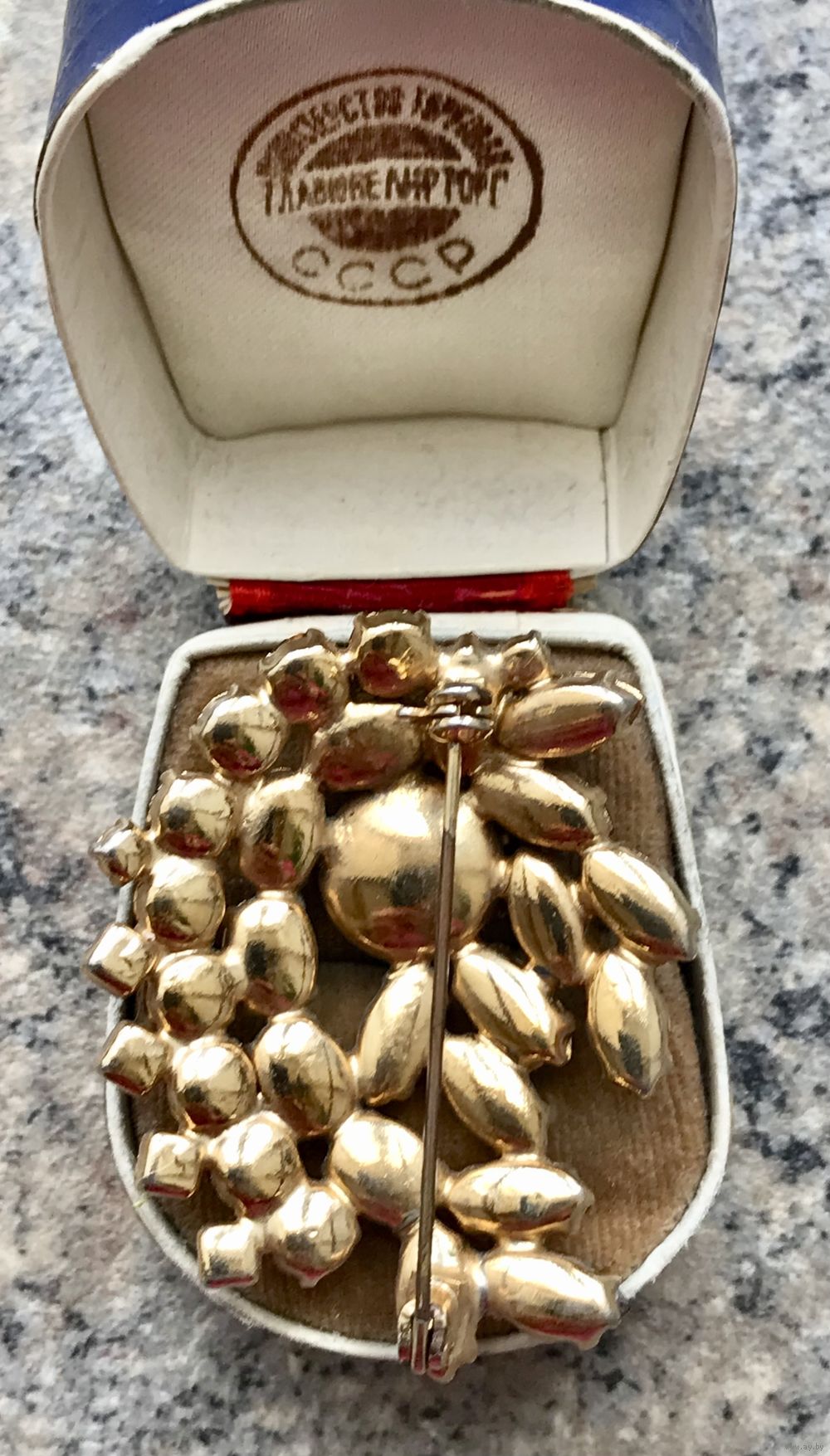 Винтажная чешская брошь с основой из латуни и вставок из цветного стекла, на центральной вставке небольшой скольчик (учтено в цене). Размер броши 4,5х3,5см.