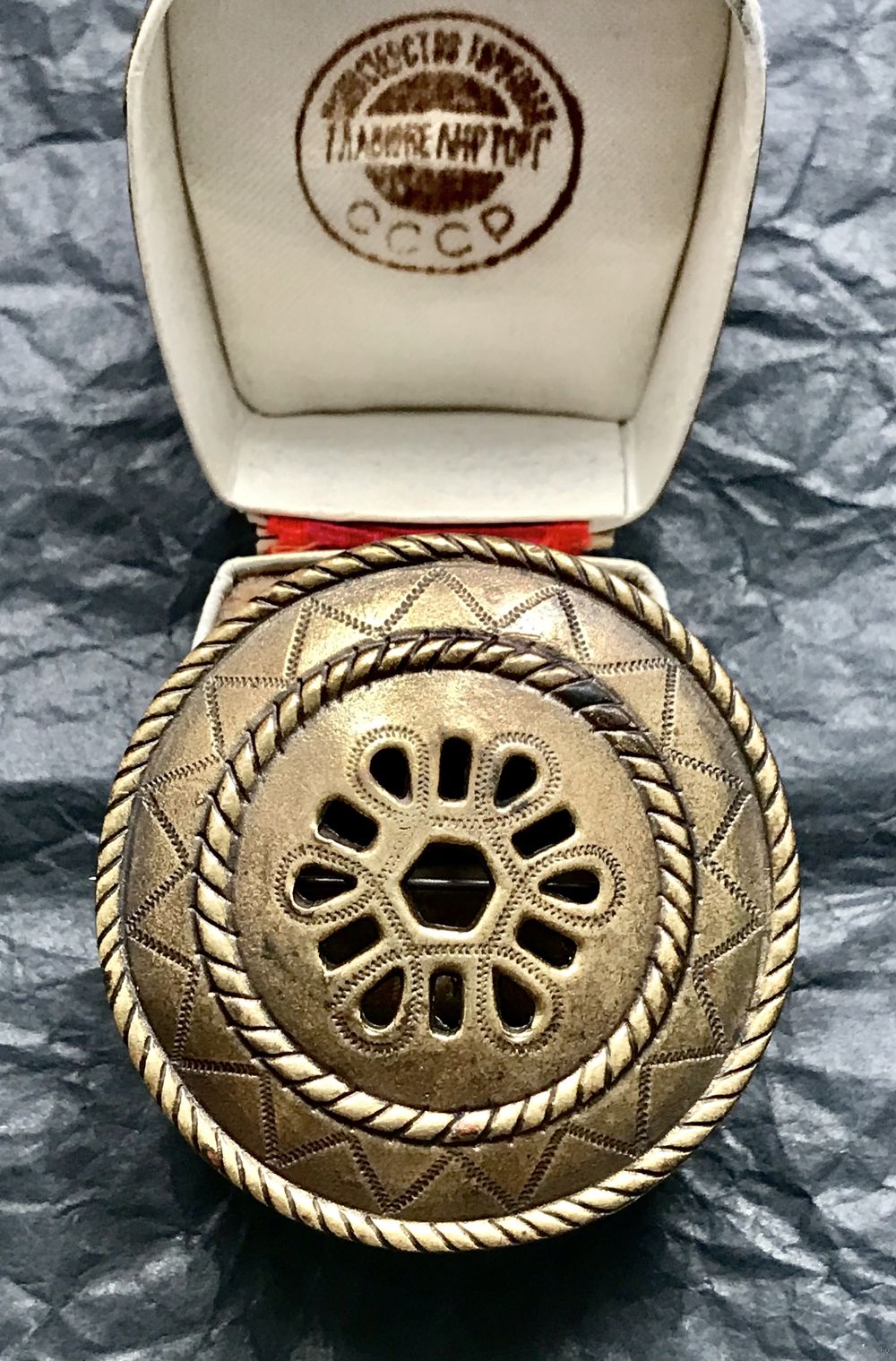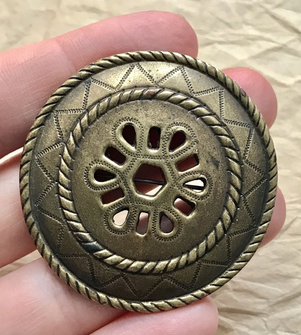 Крупная винтажная брошь из бронзы от финской ювелирной компании Kalevala Koru. Диаметр 5см., вес 24,5гр. Местами есть незначительные следы времени. Маркирована.
