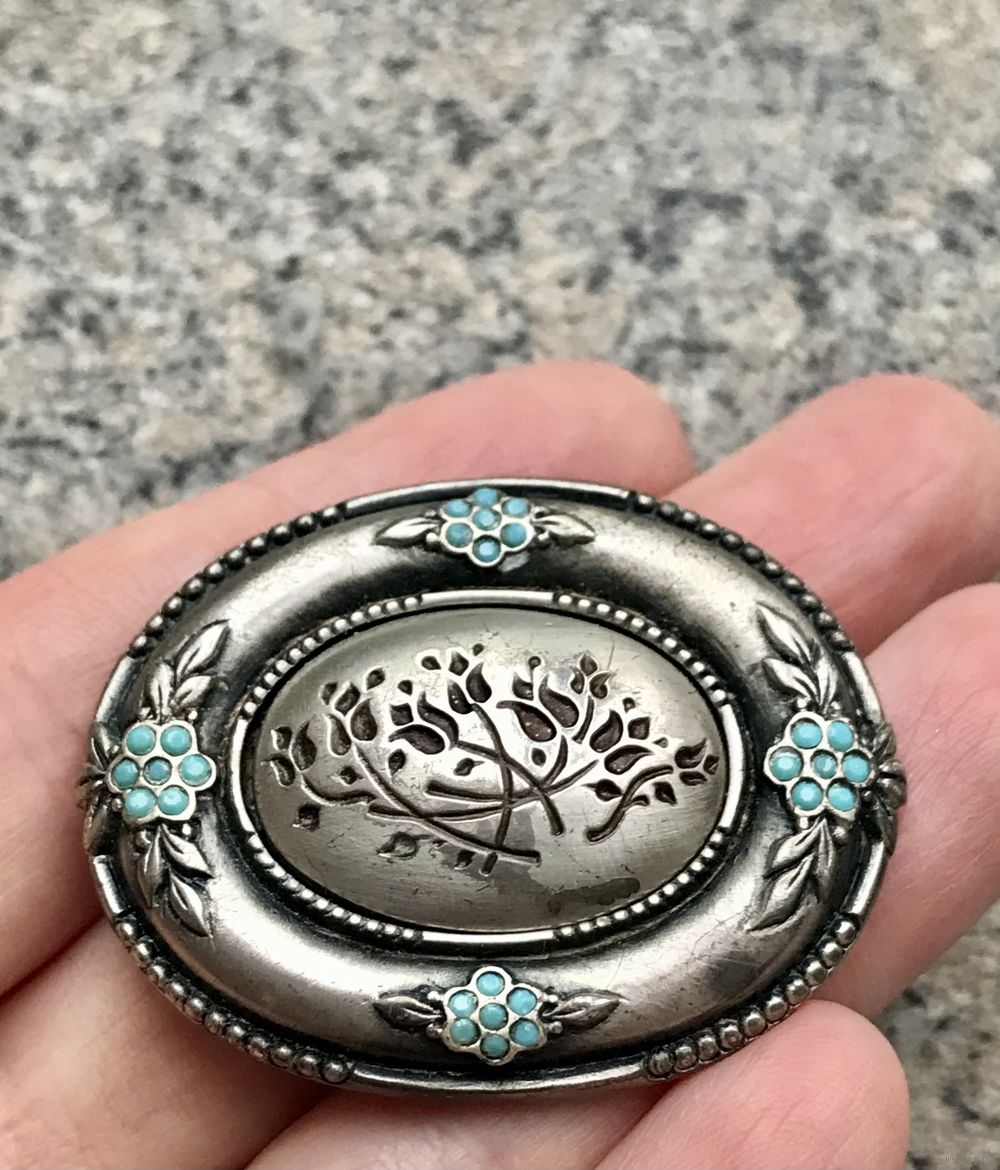 Винтажная (80-90-е гг.) брошь израильского бренда AGIL из металла серебристого тона. Размер 4,4х3,4см., местами присутствуют незначительные потемнения на металле, что совсем не портит внешний вид броши. Тяжёленькая. Маркирована.