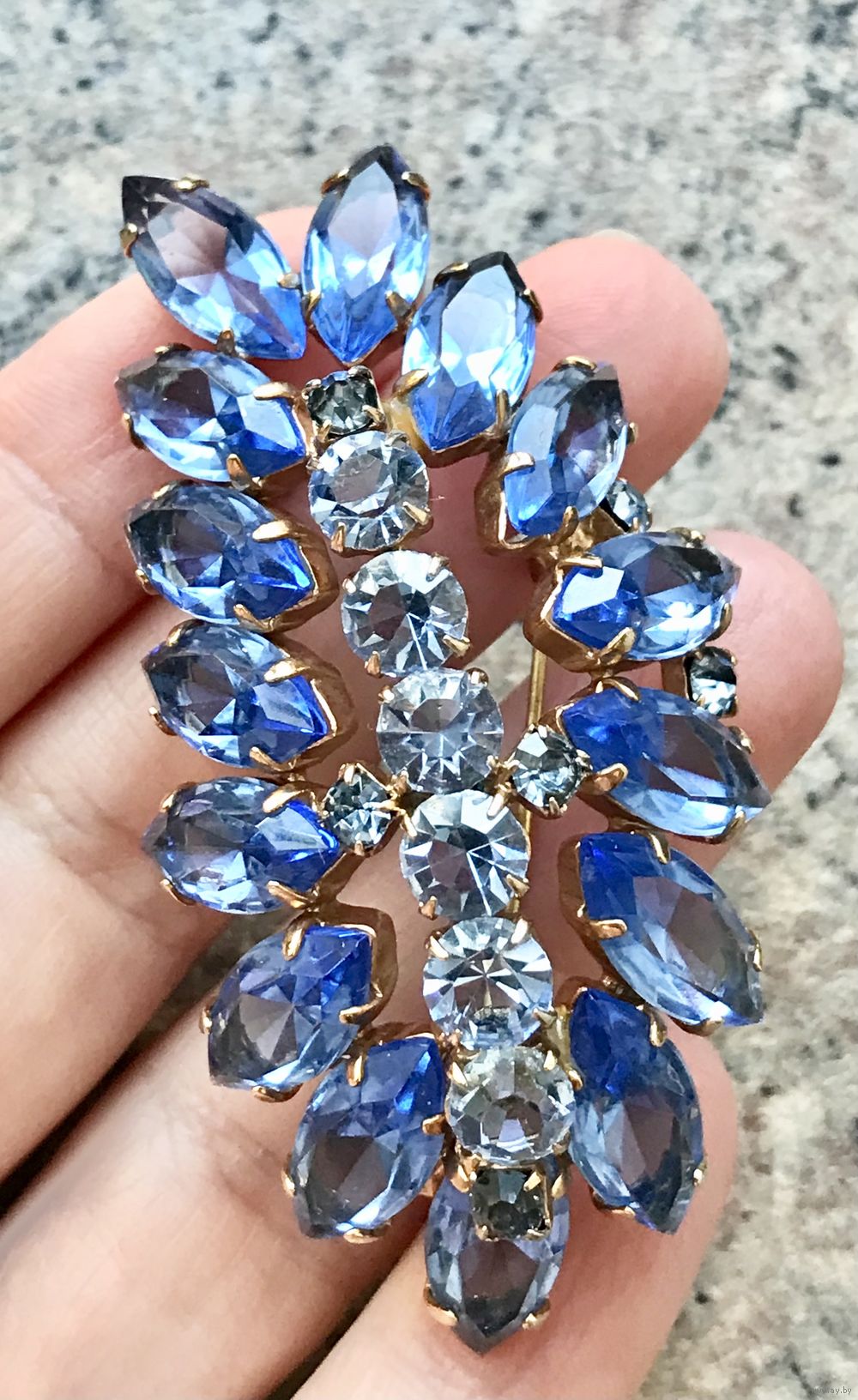 Крупная винтажная чешская брошь со вставками из цветного стекла. Размер 6,5х3,5см. Состояние хорошее.