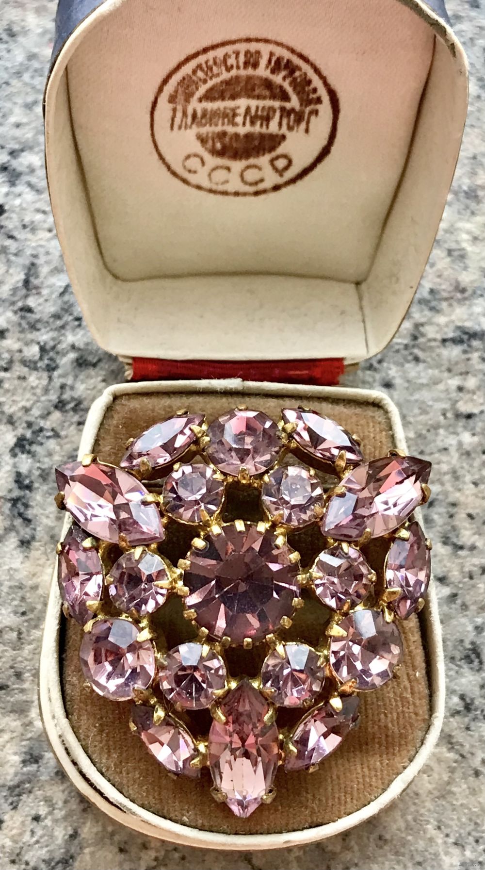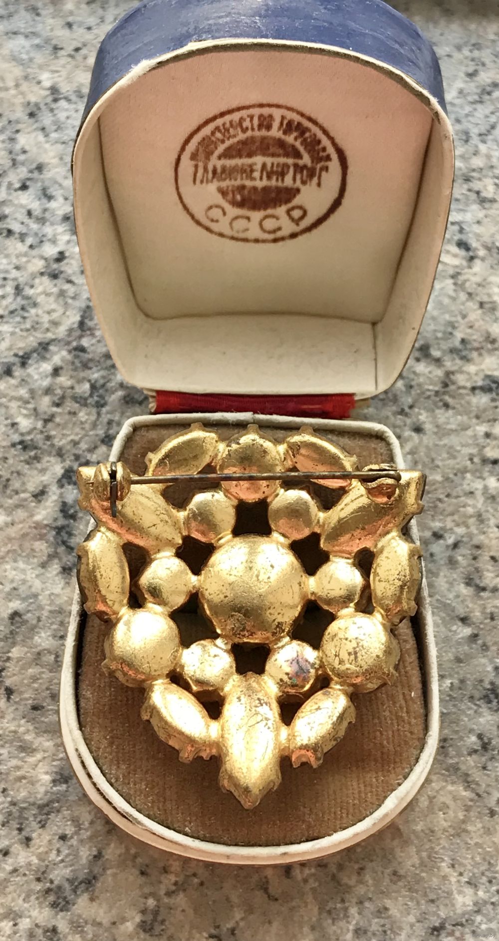 Небольшая винтажная чешская брошь со вставками из стекла. Размер 4х4х4см. Состояние хорошее.