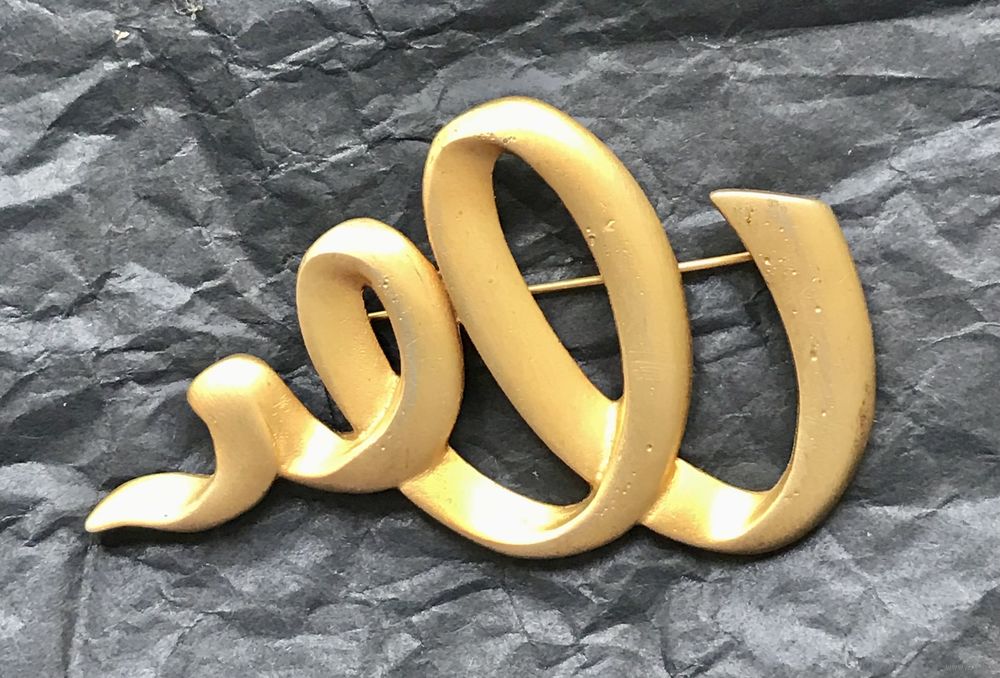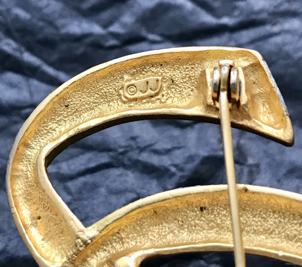 Крупная винтажная брошь известной американской компании JJ (Jonette Jewelry Co). Изготовлена из пьютера с золотым матовым покрытием. На лицевой стороне в нескольких местах имеются небольшие потёртости покрытия (этот нюанс учтён в цене). Размер броши 7х4,7см. Маркирована.