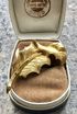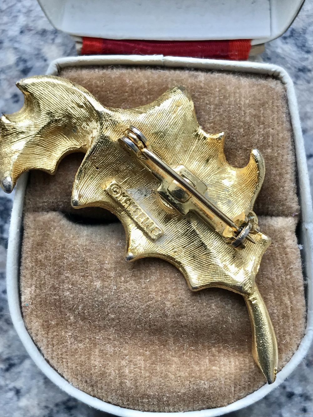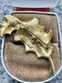 Небольшая винтажная брошь от Mamselle. Выполнена из позолоченного металла. Размер 5х2см. Местами имеются незначительные потёртости позолоты. Общее состояние хорошее.