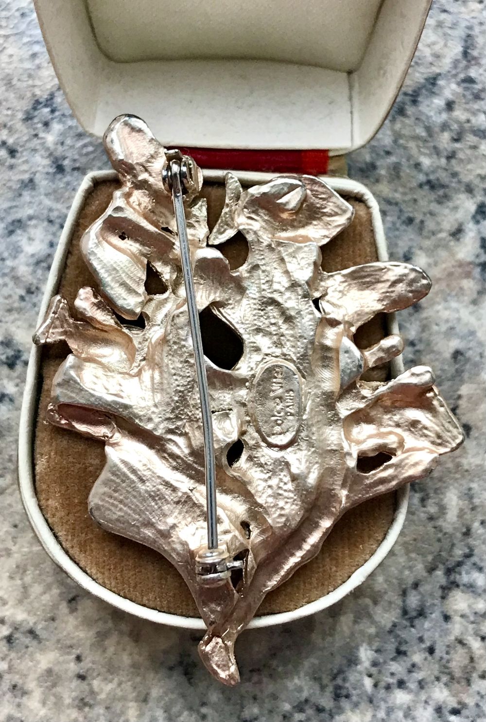 Винтажная (конец 90-х начало 2000-х гг.) брошь известного французского бижутерного бренда Dolce Vita. Брошь из бижутерного сплава цвета розового золота, высота броши 6см., ширина 4см. Состояние хорошее.