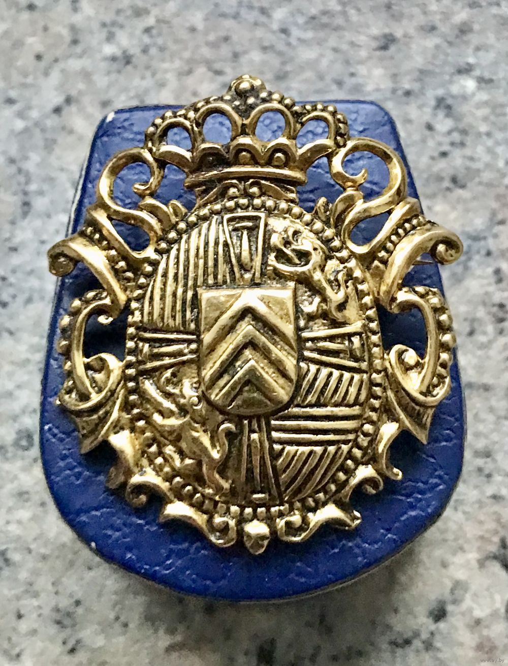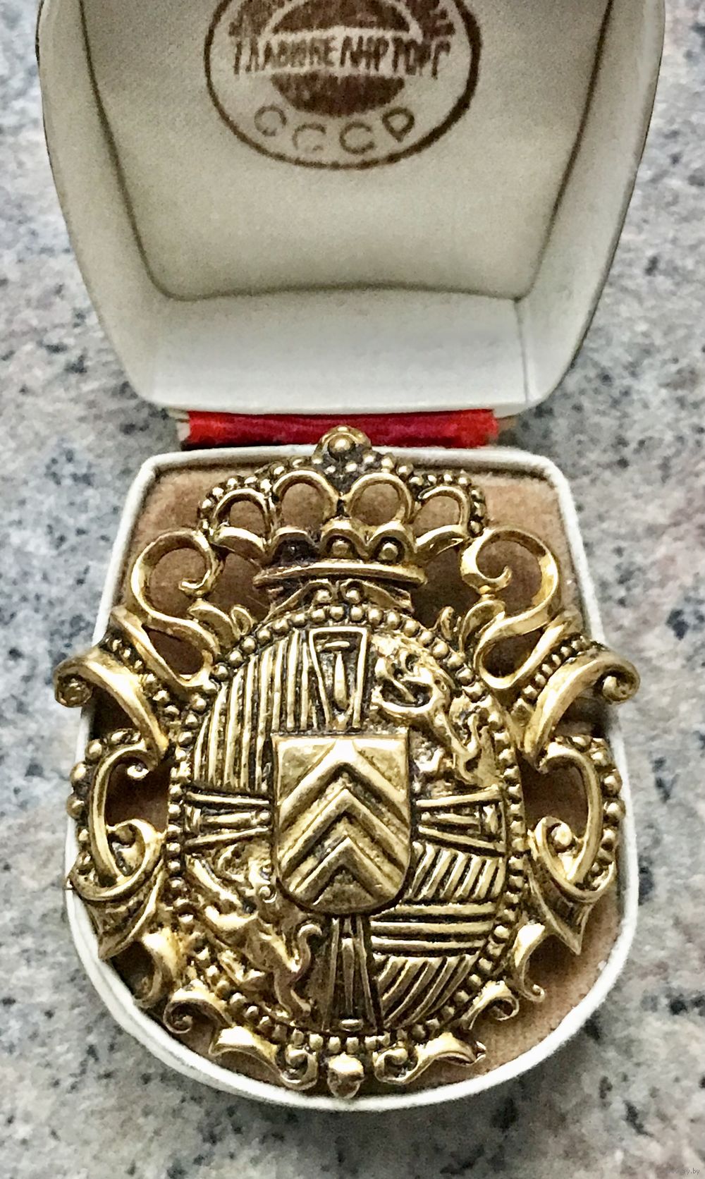 Крупная винтажная брошь в геральдическом стиле из металла золотого тона. Размер 5х5,3см. Состояние хорошее.