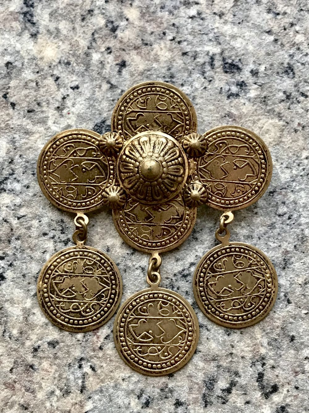 Редкая винтажная чешская брошь с основой из латуни. Размер 5,7х4,7см. Состояние хорошее.