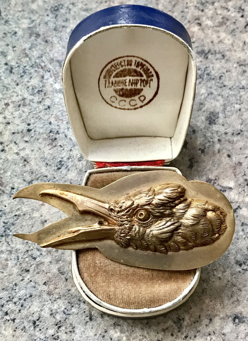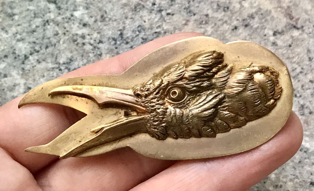 Крупная антикварная брошь из Франции. Сделана в первой половине ХХв. из латуни. Размер 7х3см. Состояние хорошее.