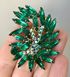 Крупная винтажная чешская брошь с основой из латуни с позолотой, лицевая сторона украшена вставками из цветного стекла и кристаллами с покрытием AB. Размер броши 5,5х4см. Состояние хорошее.