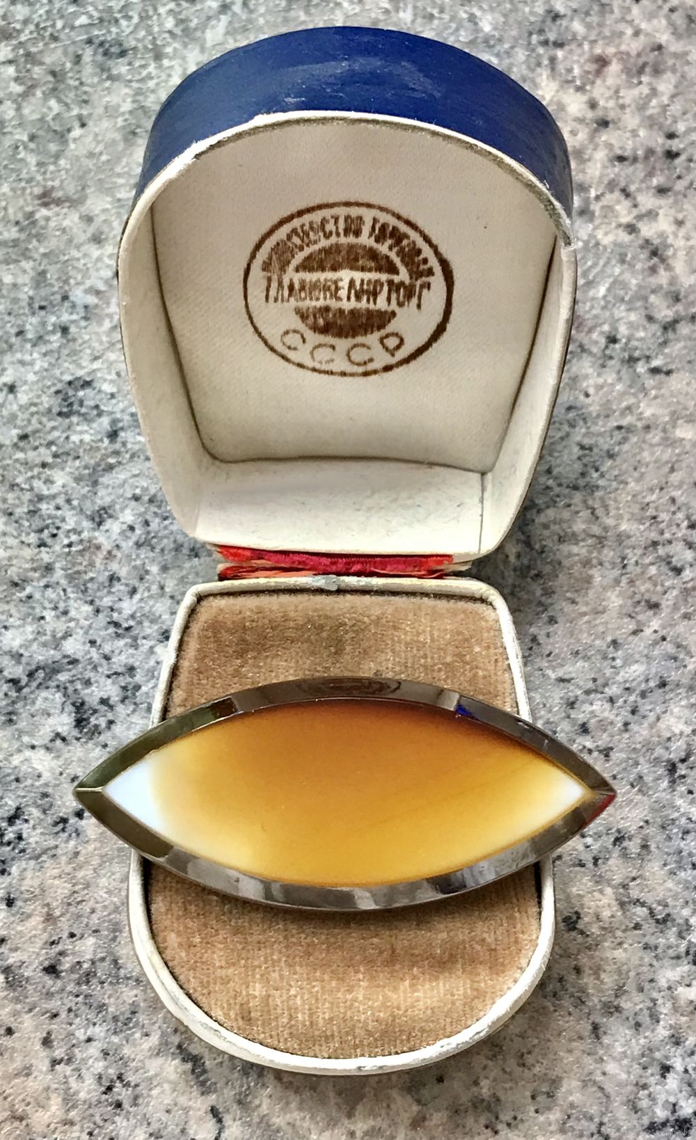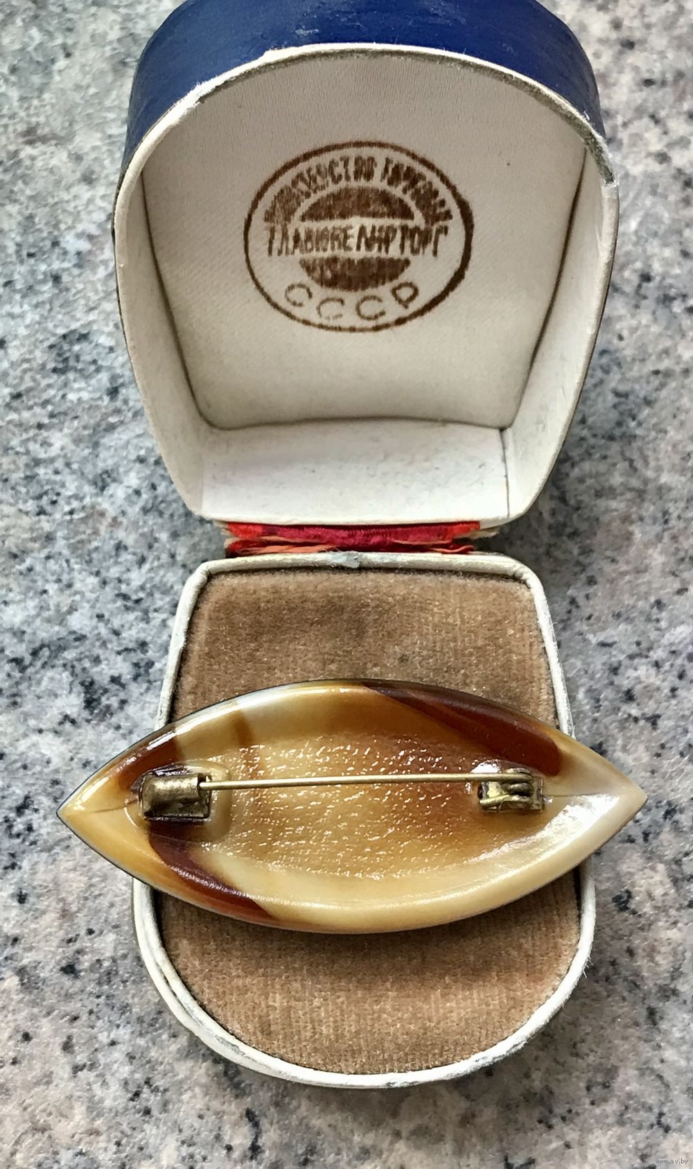 Брошь из глушеного стекла. Размер 5,3х2,3см. Состояние хорошее.