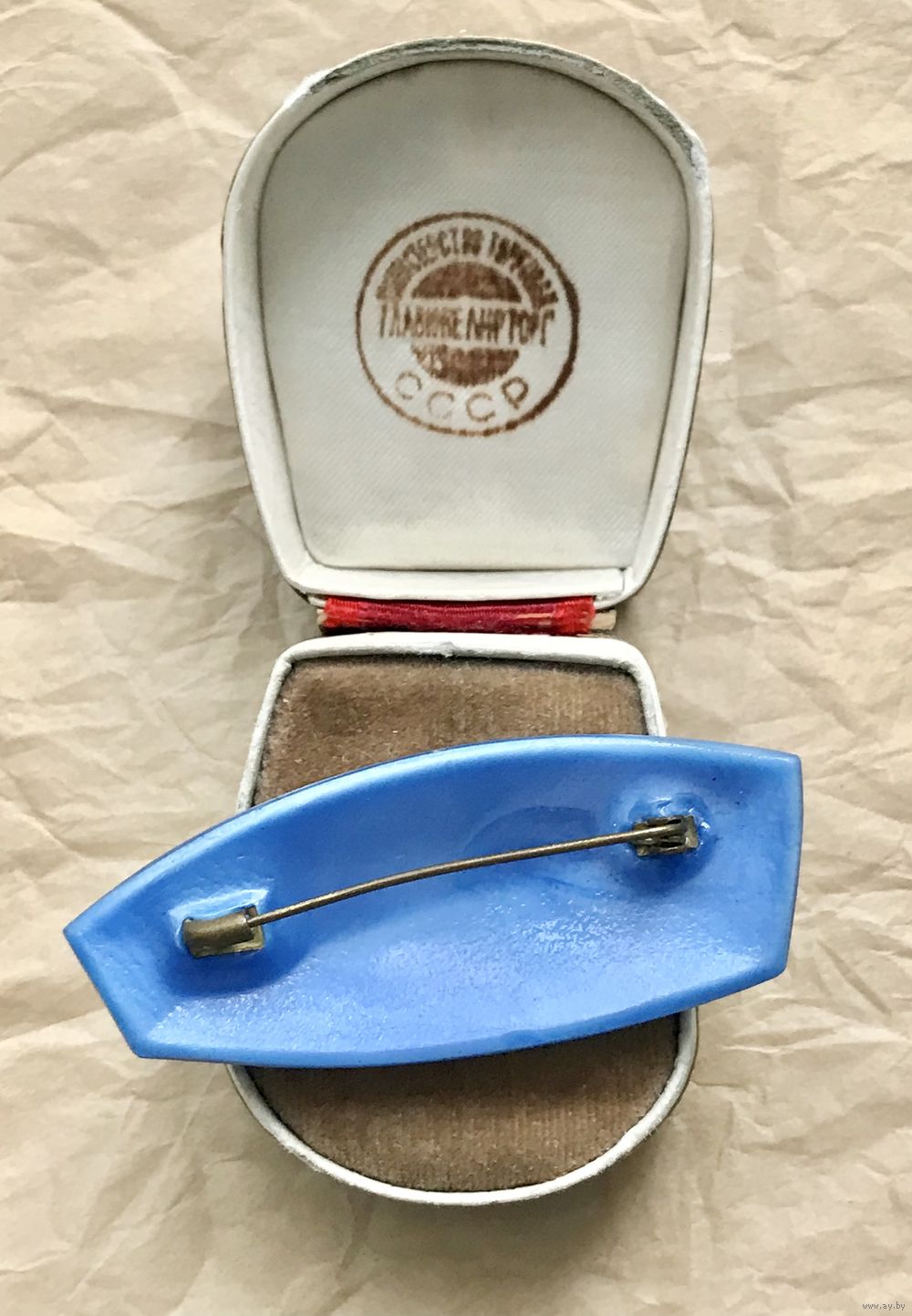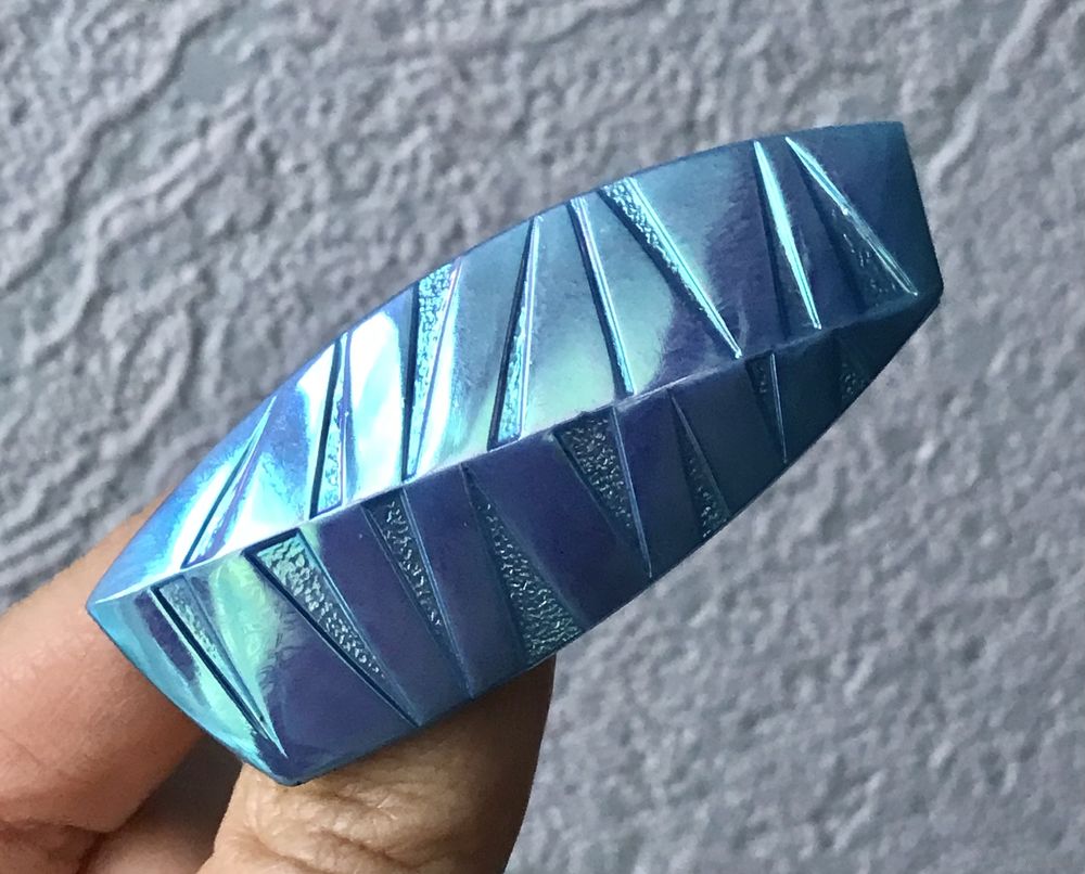 Крупная винтажная чешская брошь из глушеного стекла. Размер 6,3х2,5см. С обратной стороны по краю есть незначительный скол, который не влияет на внешний вид украшения.