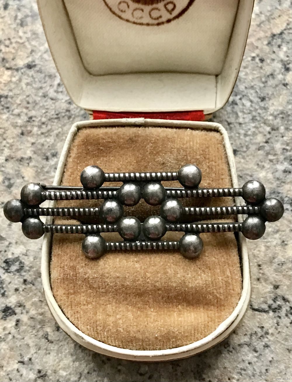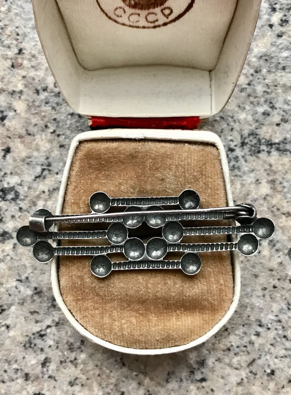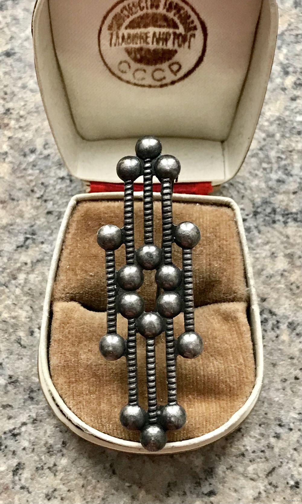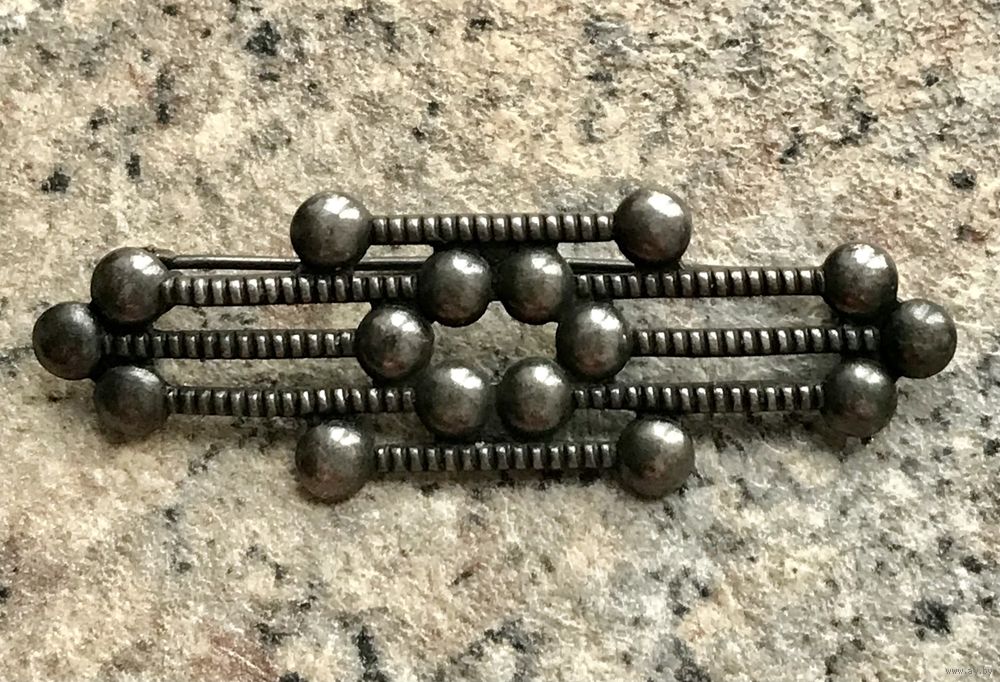 Винтажная брошь из мельхиора с чернением (на игле стоит клеймо). Размер 5,5х1,8см. Состояние хорошее.