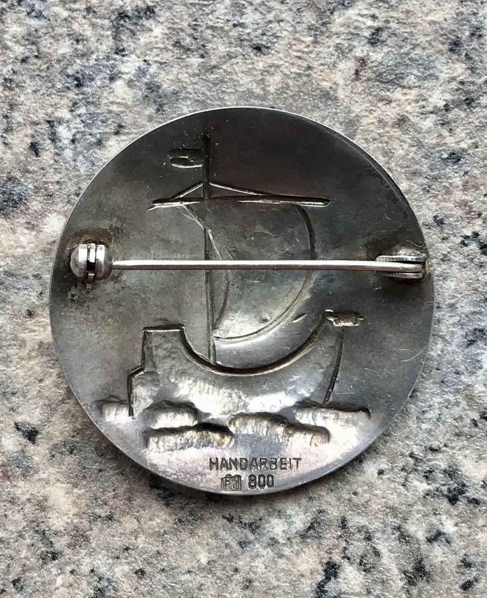 Крупная брошь унисекс из серебра 800 пр. Германия, середина ХХв., ручная работа. Диаметр броши 4см., вес 7,1гр. Состояние хорошее.