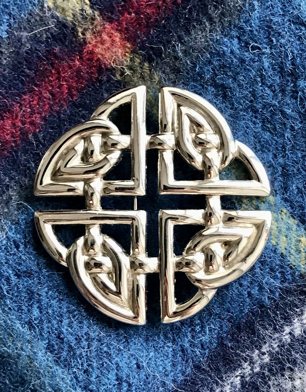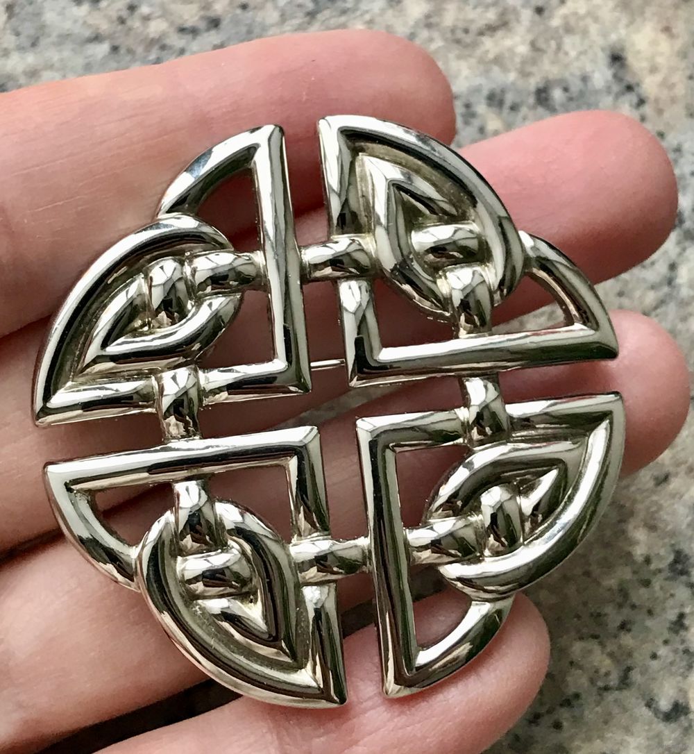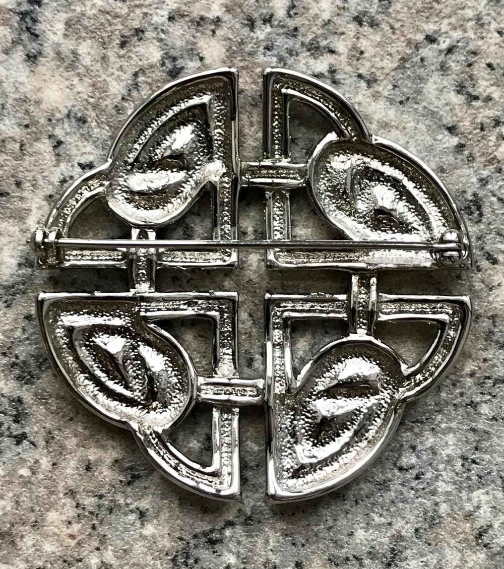 Крупная брошь кельтский узел из металла серебристого тона. Размер 4,8х4,8см. В застёжке нет фиксатора, но брошь и без него можно закрепить на ткани (учтено в цене).