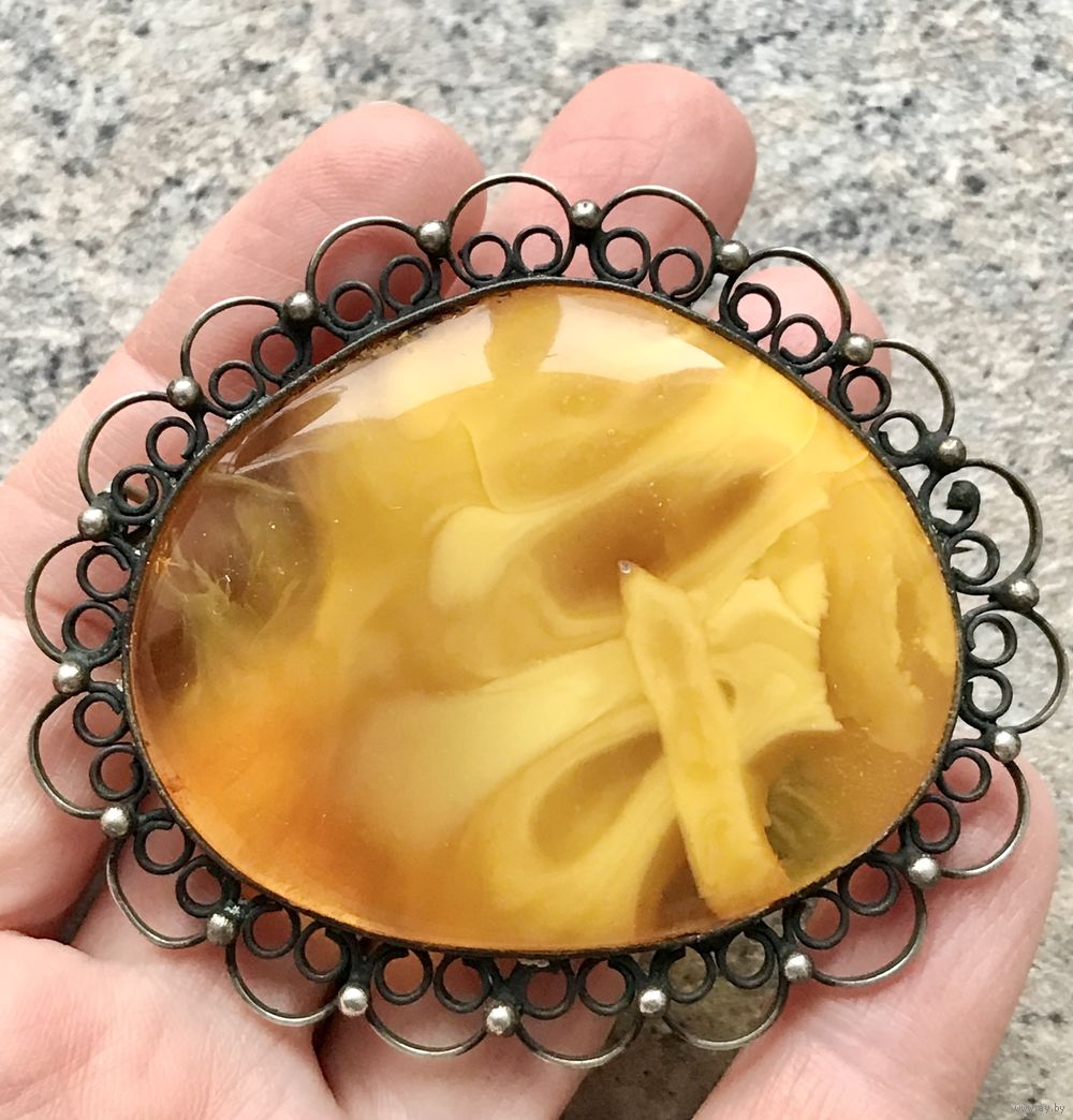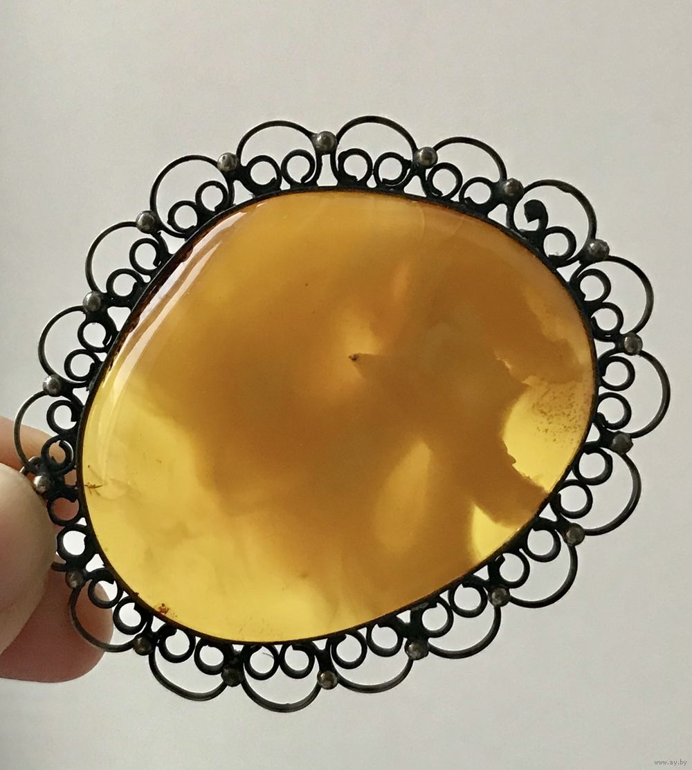 Крупная винтажная брошь с основой из мельхиора и янтарной вставкой. Размер броши 6,8х5,8см., размер вставки 5,4х4,3см. Состояние хорошее.