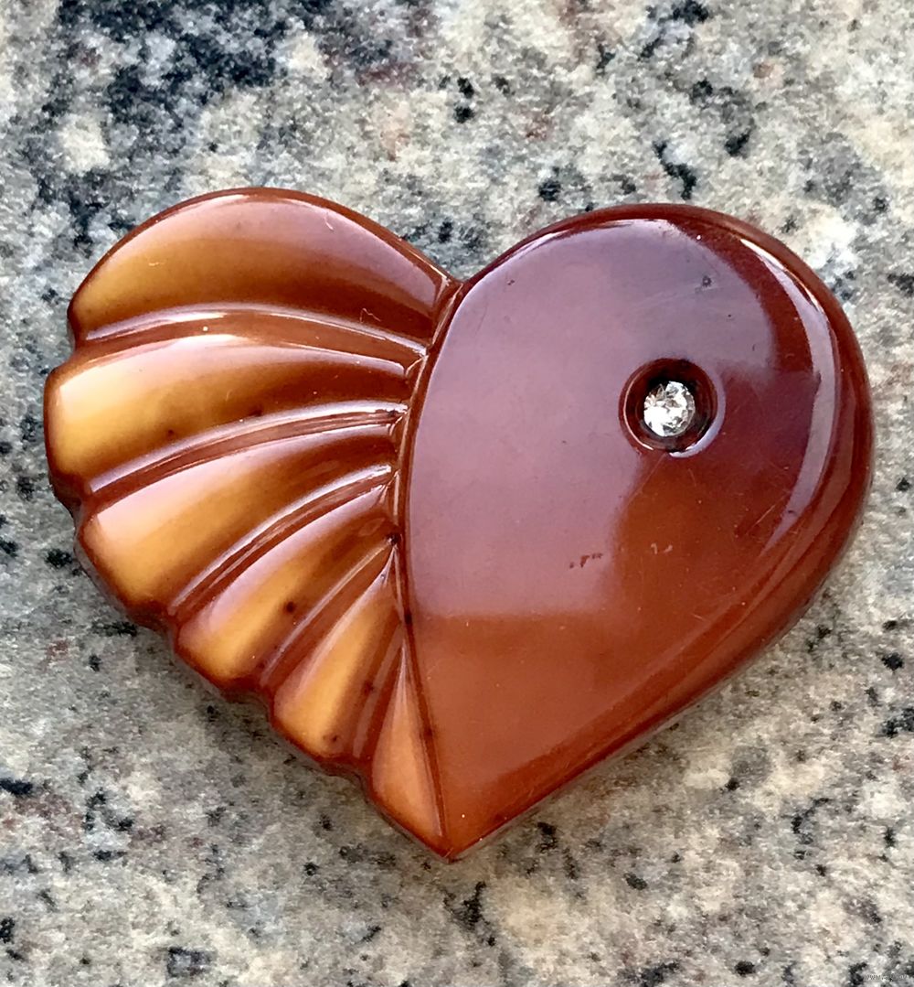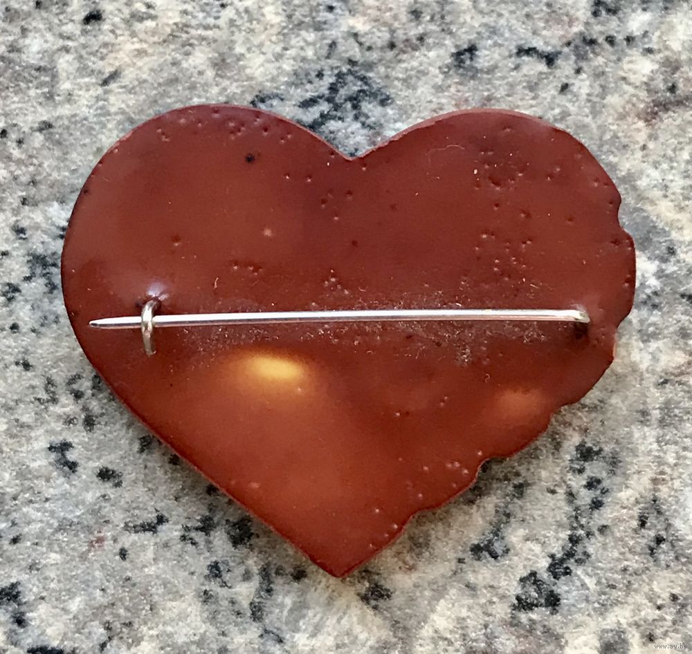 Винтажная брошь из плотного пластика в форме сердечка. Высота 3см., ширина 3,5см. Состояние хорошее.
