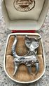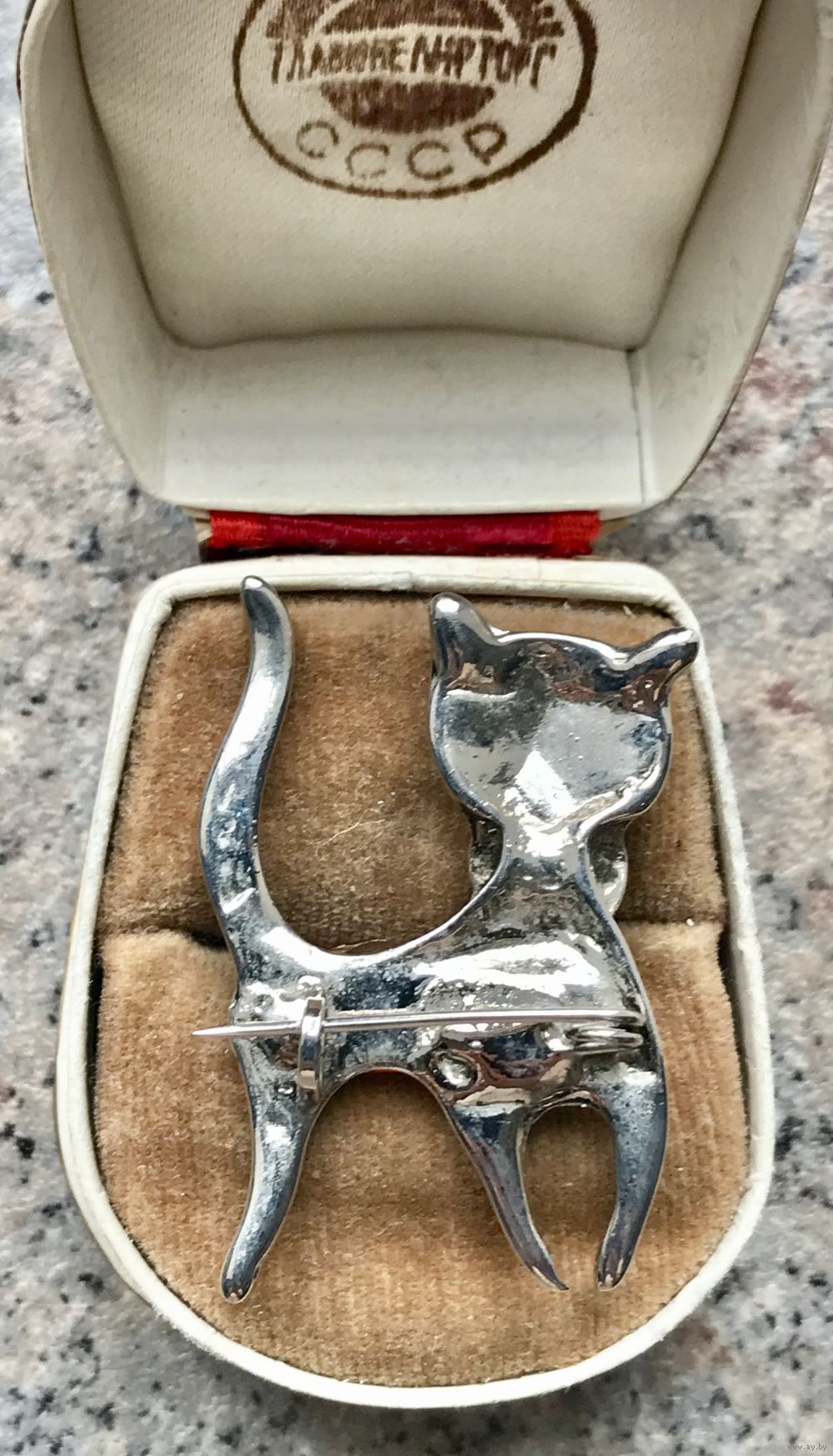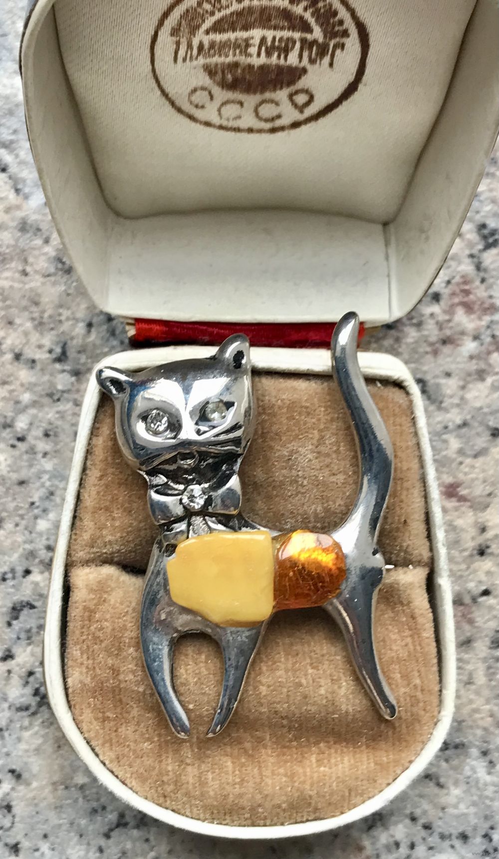 Винтажная брошь с основой из металла серебристого тона, вставки из янтаря и кристаллов. Высота 4см. Состояние хорошее.